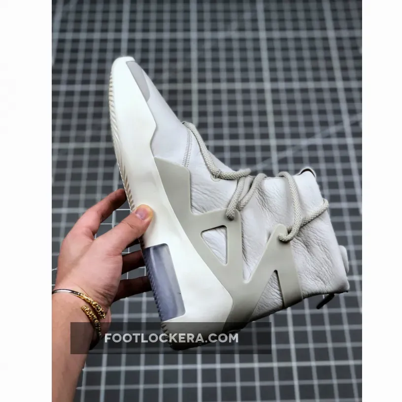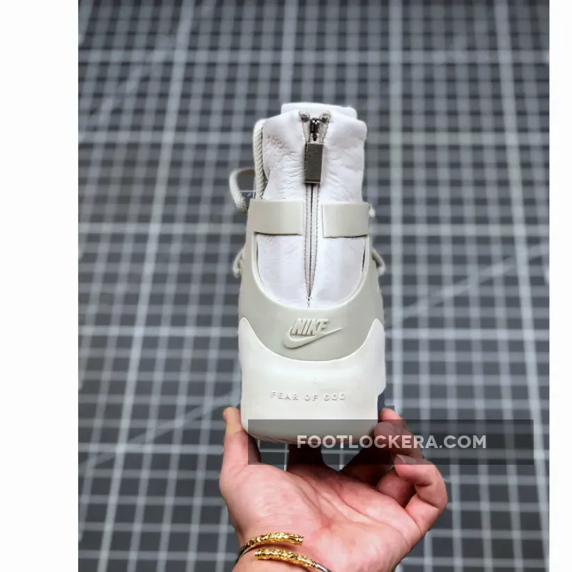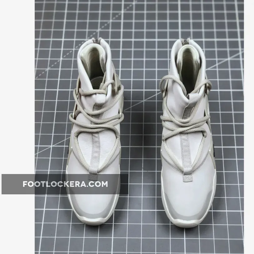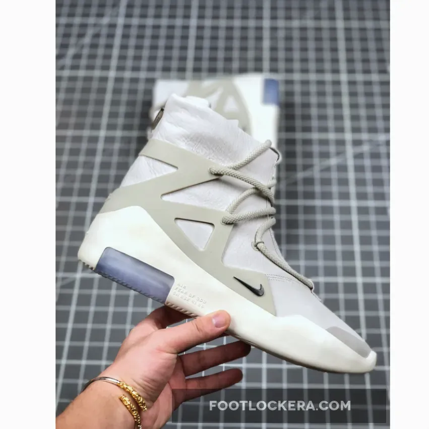One of the debut colorways comes dressed in a Light Bone color scheme. The Nike Air Fear of God 1 comes with a double-height Zoom Air heel unit reminiscent of the Air Max 180. Its upper features an exterior TPU heel and lacing cage inspired by the Air Huarache Light for lockdown support.