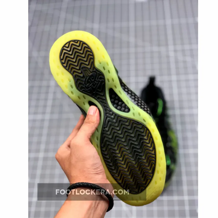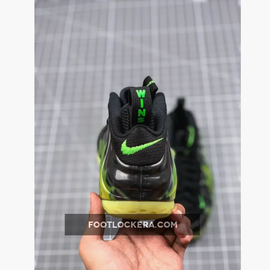The Foams feature printed smoke graphics on the shell inspired by ParaNorman’s zombie grave-escape visual effects. Pull-tabs over jagged-stitched embroidery on the heels read “Weird Wins” and Electric Green glowing outsoles with carbon fiber supports provide high visibility above and below ground.