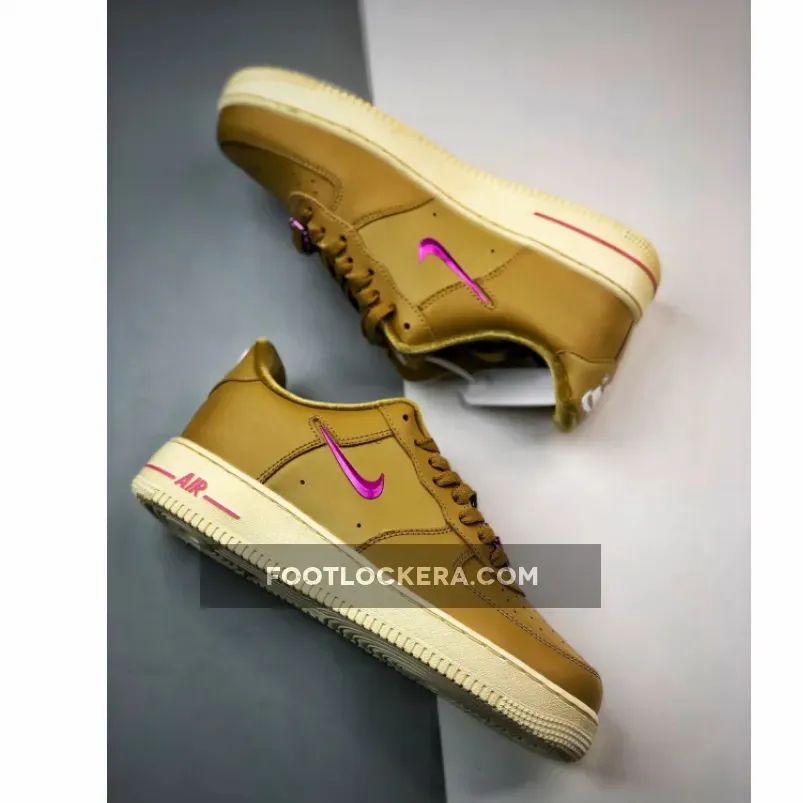 What truly sets this sneaker apart are the flashes of vibrant fuchsia that command attention amidst the autumnal palette. This lively pink shade enlivens the mini Swoosh on the midfoot, infuses energy into the heel branding, and transforms the enamel “Just Do It” dubraes into small but powerful declarations of style and spirit. The fuchsia elements are not just color pops; they are symbols of Nike’s fearless approach to design, an invitation to wearers to embrace boldness in every step.