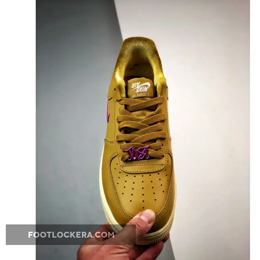 the upper captures one’s attention with its smooth Russet leather, a hue that echoes the earthy tones of fall. The use of tonal nylon tongues, flat laces, and a plush velour liner adds a touch of understated luxury and comfort, enhancing the overall tactile experience. This warm, inviting foundation sits upon a sail-tinted sole unit, a subtle nod to the classic Air Force 1 design lineage.