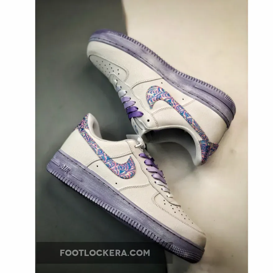 the Nike Air Force 1 has been showing face with a multitude of interesting ornamentations such as wear-away uppers, Japan-inspired all-over patterns, and cut-out Swooshes. Keeping this decorative mentality moving, the Beaverton-based team has now fashioned a new rendition for their women’s audience this Spring that features Swooshes remixed with psychedelic allure. Falling against a “Hydrogen Blue” backdrop that aligns with its entire bottom piece, the swirly patterns glow with multi-colored vibrance from every angle that the light hits. Additionally, if you take a close look at the tongues, you’ll notice that its traditional branding has been flipped in reverse similar to that of a recent Air Max 90 colorway.