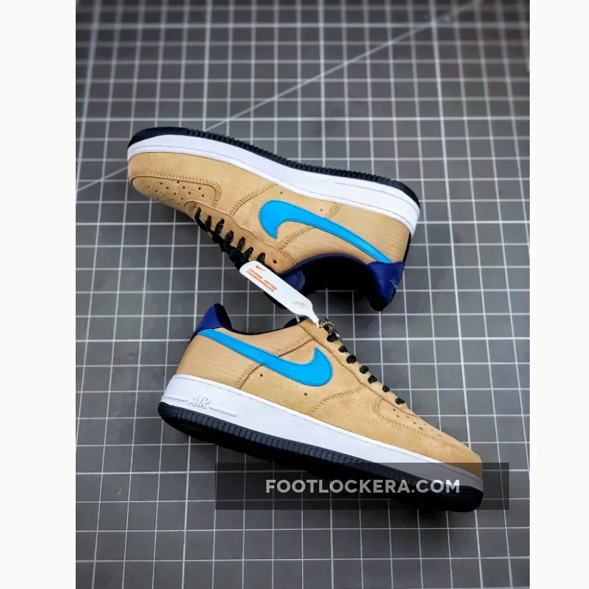 . The Air Force 1, fittingly, comprises a strong majority of this collection as its third entry plays off the cream bases of one of its debuting few. These neutral shades seat much of the upper in either suede or ripstop synthetic, leaving the Swoosh and adjacent branding to infuse color with a mix of cool tones: “Blue Fury” dyes the check, dark purples hit the heel tab, and darkened teals thread the warped “Nike Air” embroidery