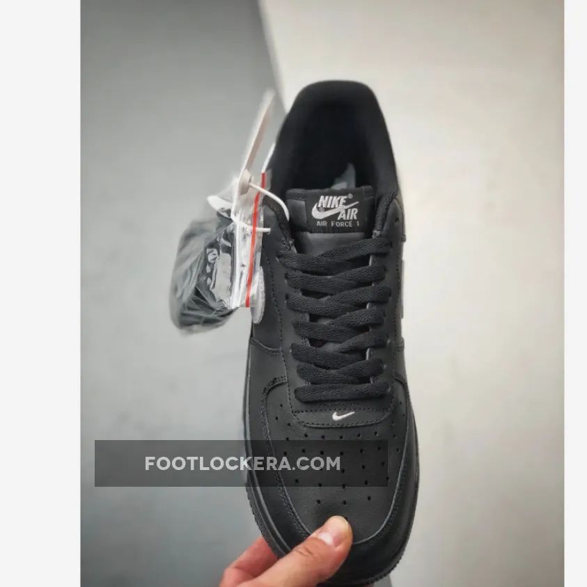 This version of the iconic Air Force 1 Low features a classic Black and White color scheme. The shoe boasts a full leather construction, ensuring durability and style. Perforations on the toe box enhance breathability, while the mesh tongues and inner lining maintain comfort. The all-Black upper, matched with black tongues, laces, inner lining, insoles, and AF1 rubber sole, creates a sleek and cohesive look. The White accents on the Swoosh logos, branded tongue tags, insoles, and heels complete the popular design.