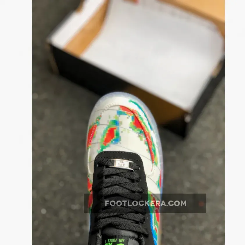 This Nike Air Force 1 Low CMFT Premium is a part of the “Weatherman” Pack. Coming in a white, action red and flash lime colorway. They feature a unique Doppler radar-like design throughout the upper with an icy blue translucent midsole/outsole combination.
