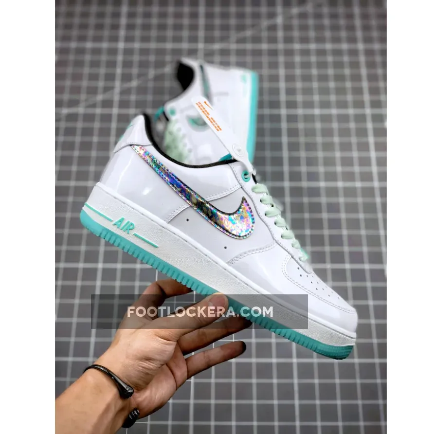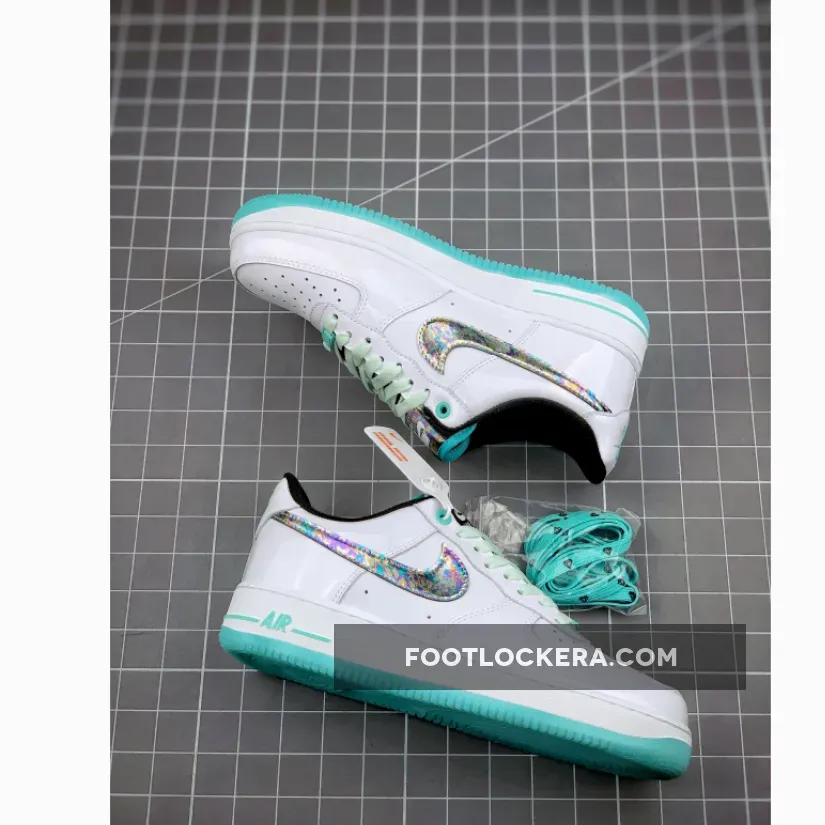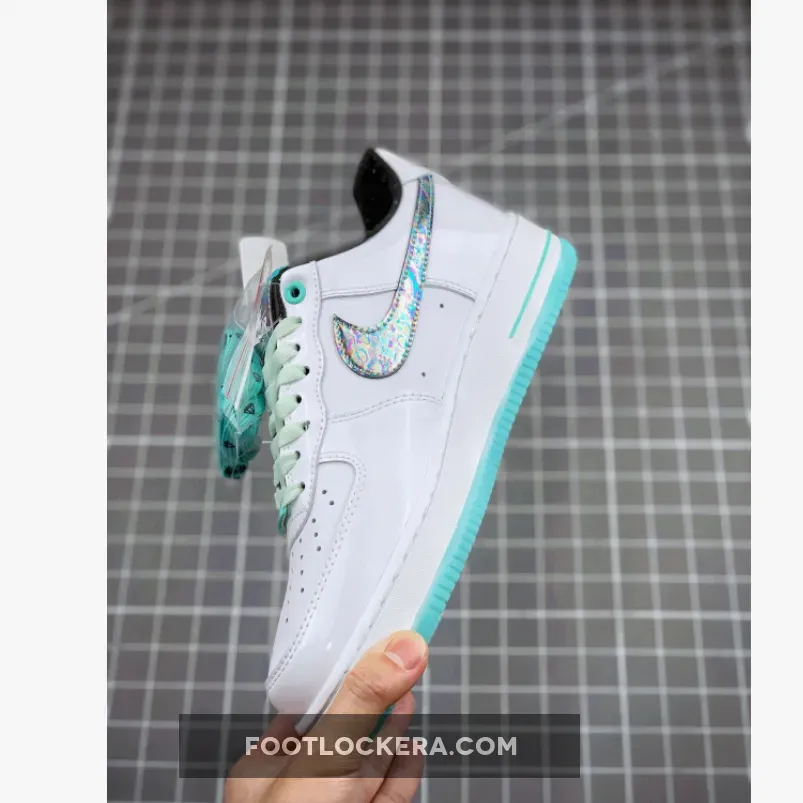 Super ? design on these Air Force 1 Lows! The iridescent abalone shell vibes are next level. Love the aqua accents too ?? #NikeAF1 #SneakerGoals