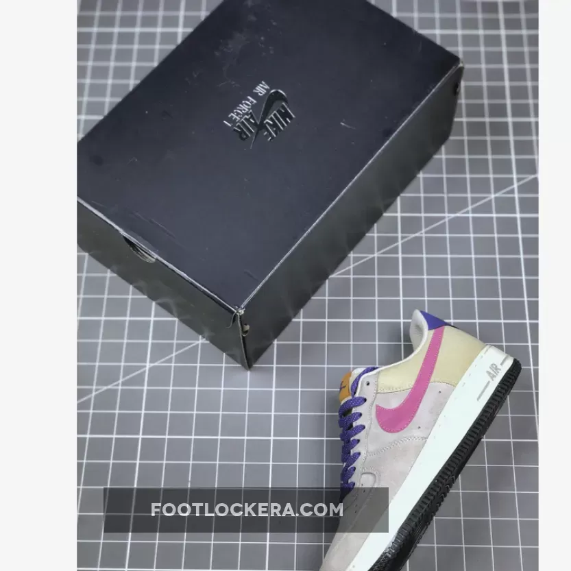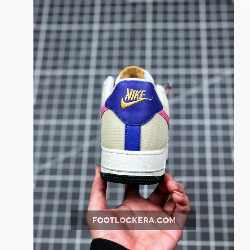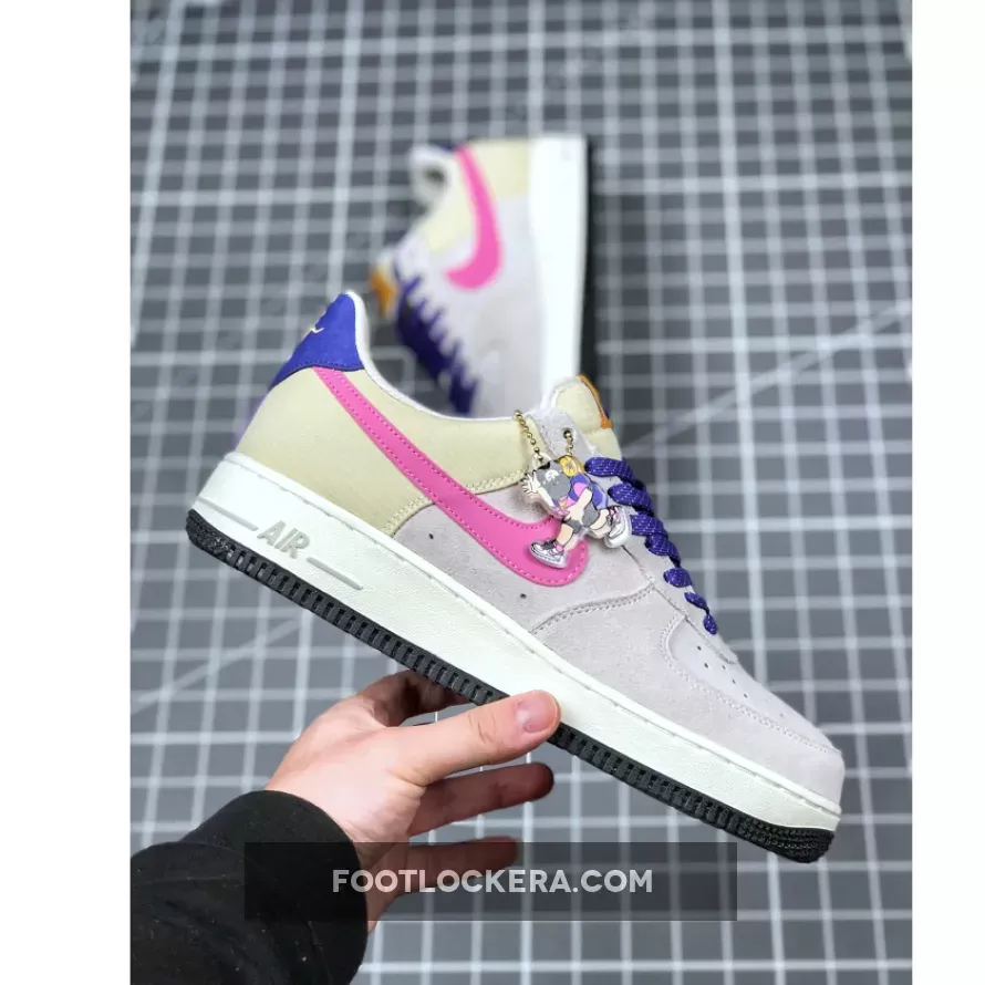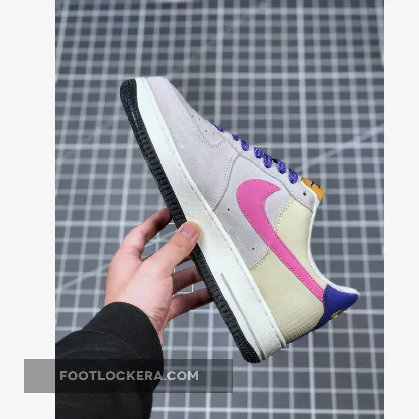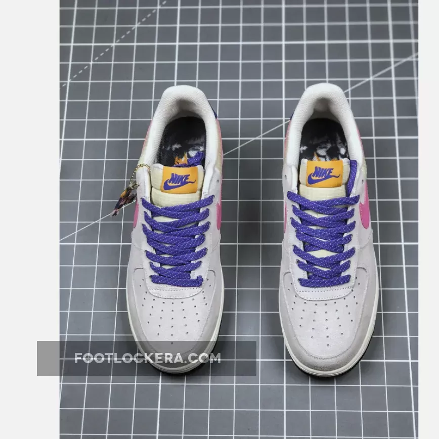 This offering of the Nike Air Force 1 Low features a Beige upper constructed in a mix of ripstop and suede highlighted with ACG-themed accents in a mix of Pink, Orange, and Purple.
