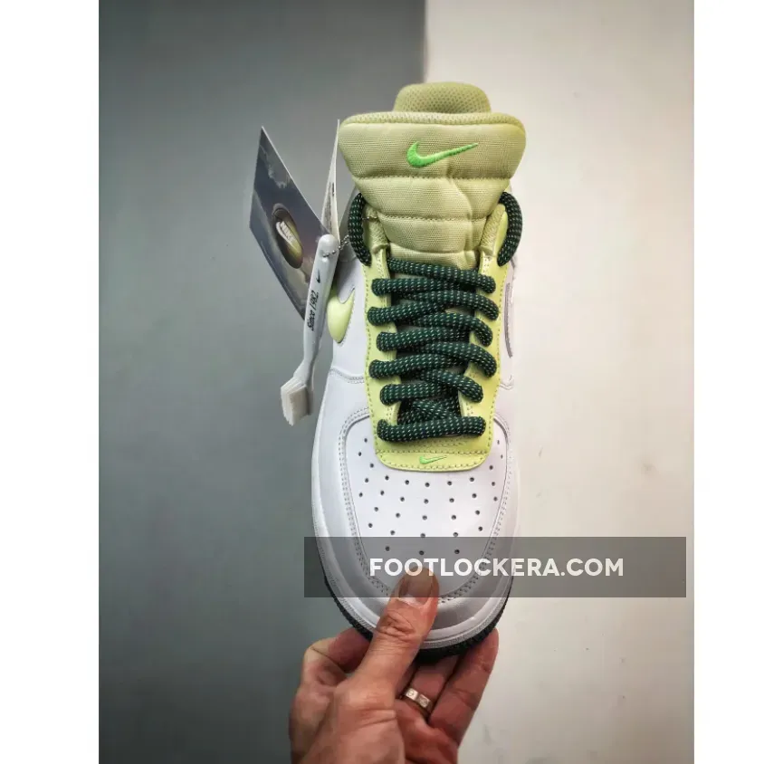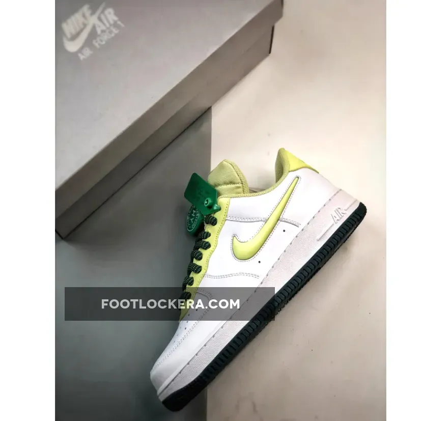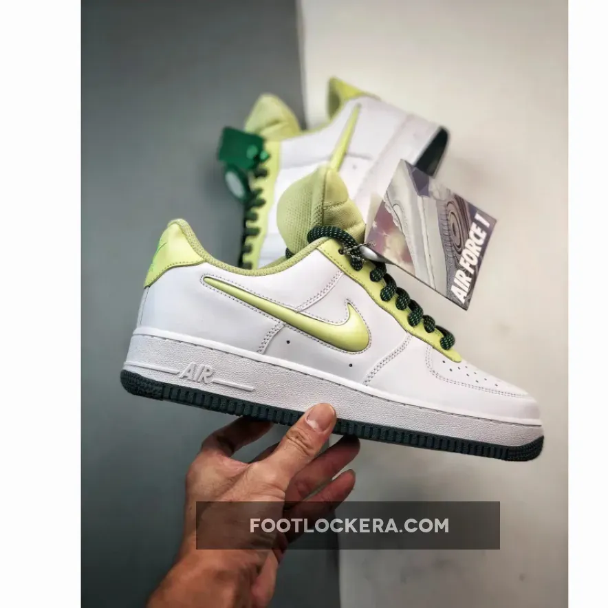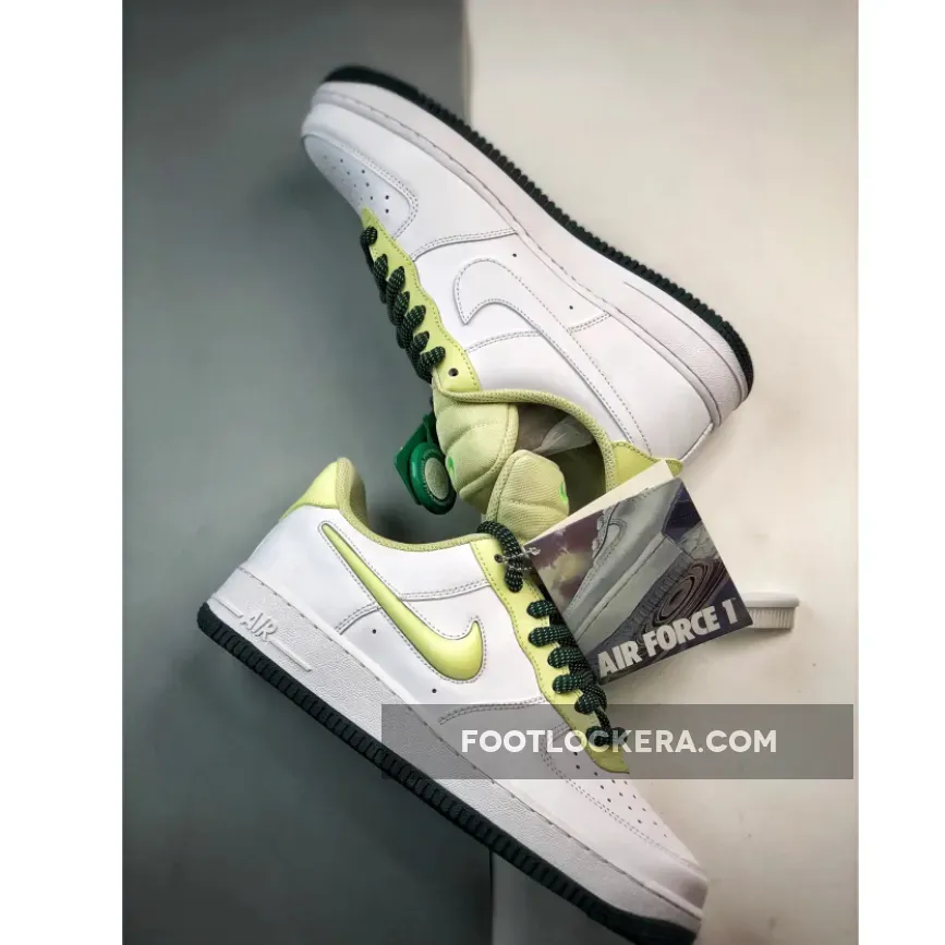 The palette on the “Big Tongue” Air Force 1 Low is as refreshing as a summer afternoon. Anchored by a clean white base, it lets its colors do the talking—quite literally. The rubber outsole and thick laces are awash in a refreshing green, setting the stage for the other standout hues. Then comes the lemon—a color that punctuates the elongated tongue, eyestay, heel overlays, and notably, the protruding jewel Swoosh which graces the profile side.