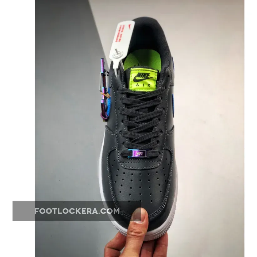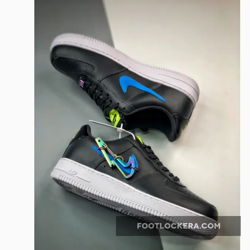 This Nike Air Force 1 Low feature a Dark Smoke Grey, Photo Blue, and Volt color combination. Highlighted with Black leather on the base while Blue appears on the Swoosh logos. Volt drapes the tongue label, heel, and insoles while an iridescent ‘Carabiner Swoosh’ appears on the lateral side. Other highlights include a pocket with a zipper on the tongue and a White sole.