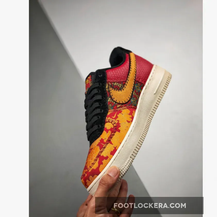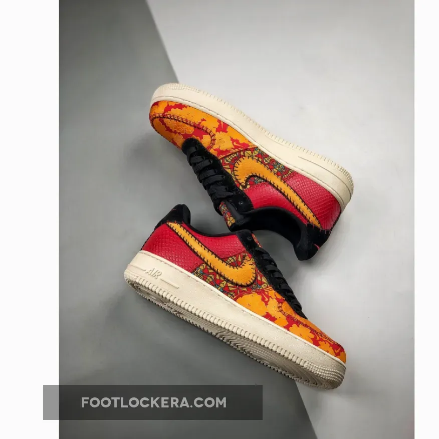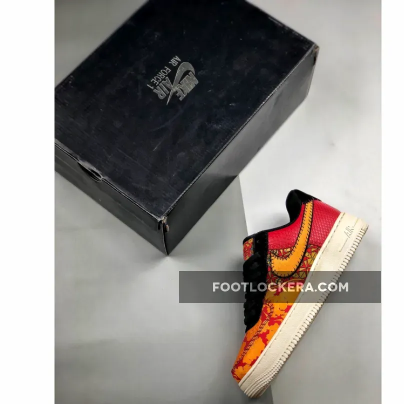 This celebrated Nike Air Force 1 Low features Chinese-themed graphics and prints covering its entire upper with a stitched Swoosh logo and reptile textured on the heel area. Other details includes branded tongue labels atop a Sail White rubber AF1 rubber sole.