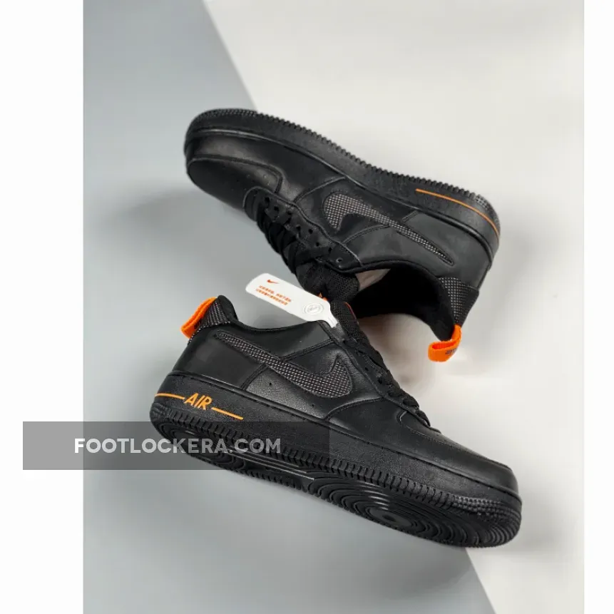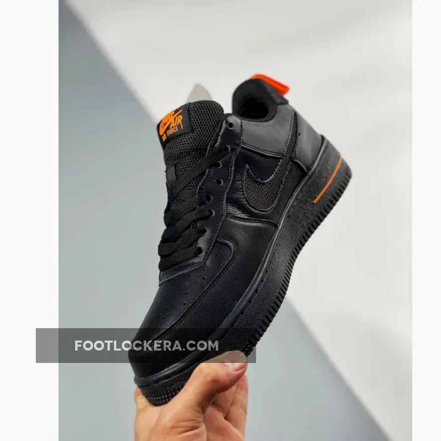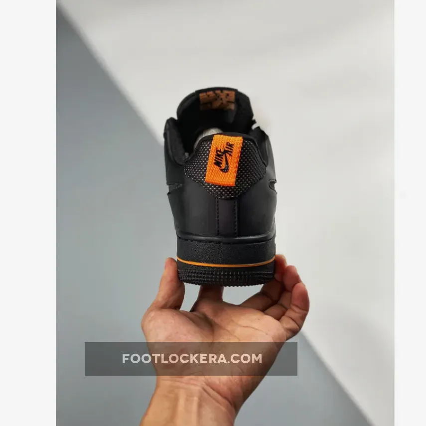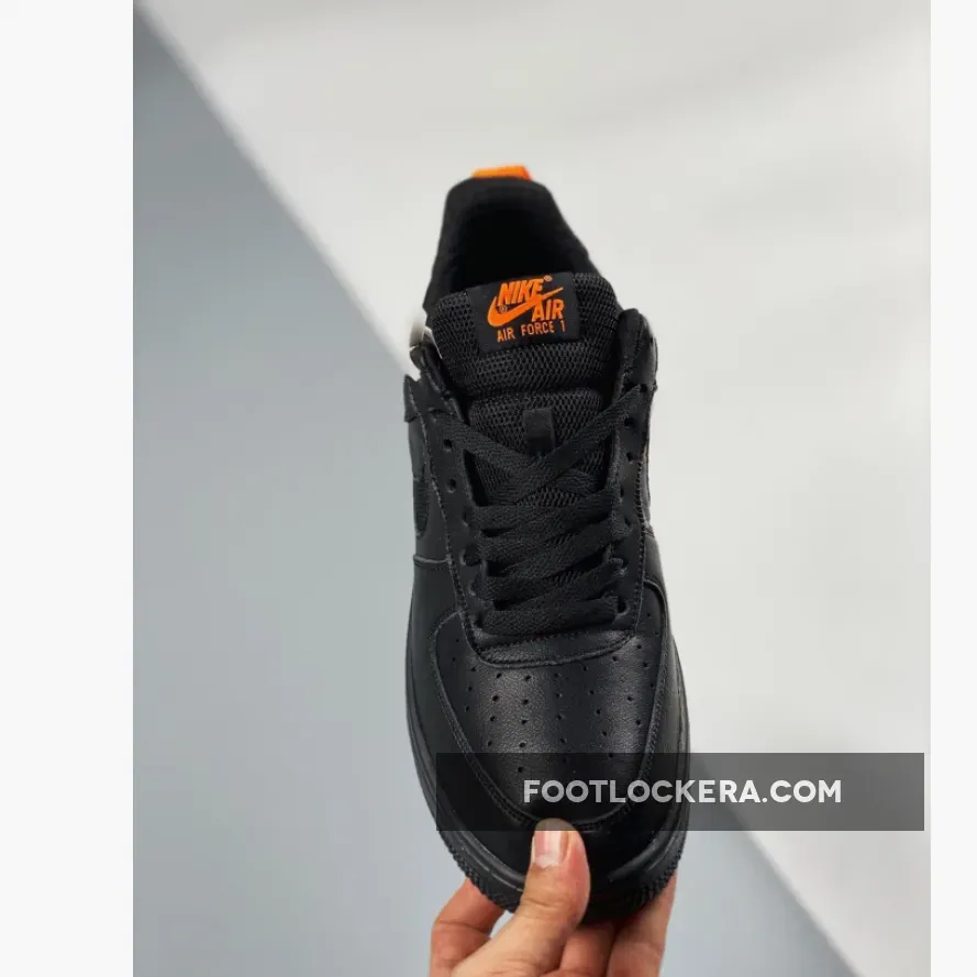 The upper is crafted from a black mesh creating a tonal, textured look, while a contrasting bright orange logo graces the tongue. Perforations are presented on the toe box which act as a signature design element while optimising the ventilated technology inside the shoe. The signature Swoosh design is created with a negative-space aesthetic, where it has been cut out and crafted with a mesh fabric while also improving breathability. This design is mirrored on the heel panel, complemented with a bright orange heel tab, illustrating the iconic Nike Air logo. Here we can see that the embossed “AIR” logo is vibrantly painted with an orange hue to finish off this daring design.