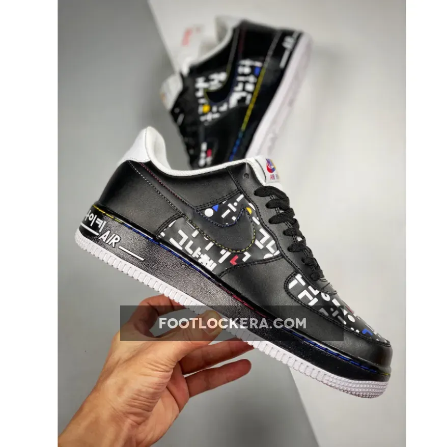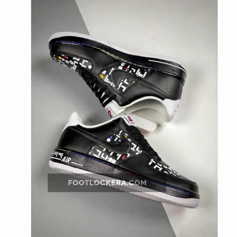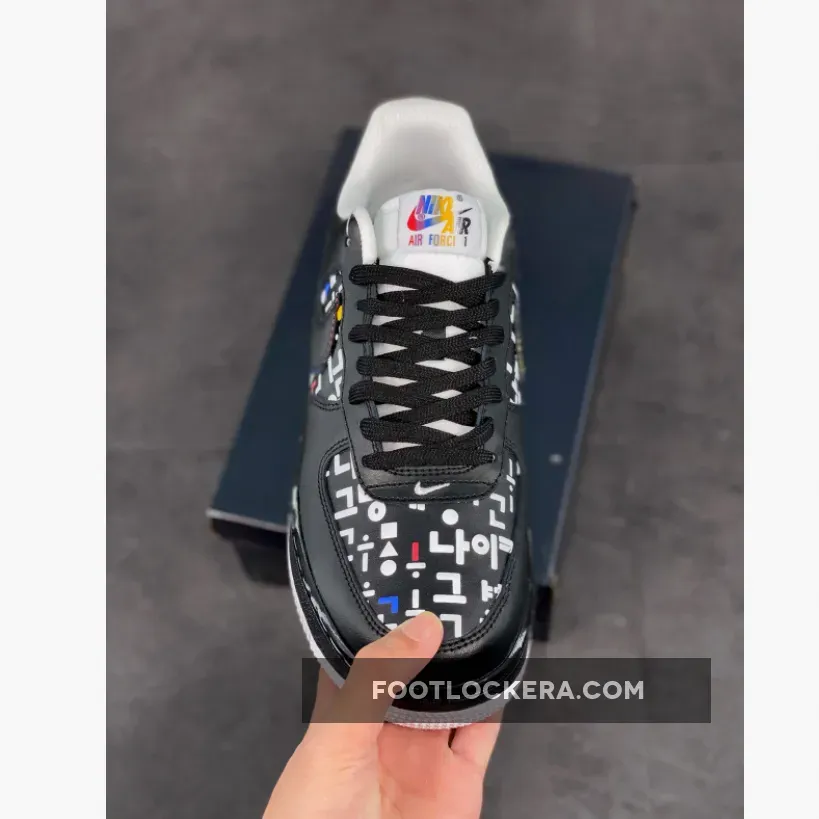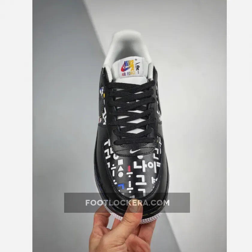 Say annyeong to the Nike Air Force 1 Low Hangul Day Black. The classic silhouette gets a makeover in celebration of Hangul Day. The black leather base is designed with Korean alphabet characters — most taking on a white font while some are in blue and red prints. The same fun palette is found in the Nike Swoosh outline, on the tongue branding and at the heel where vertical red, blue, yellow, white and black stripes extend from the counter to the sole. Sleek and modern with a touch of youthful K-pop-inspired energy, this pair is indeed a must-have. This design is also available in a cream colourway.