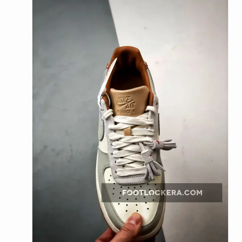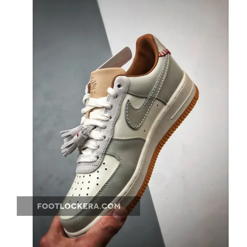In Light Bone, Sail, Light British Tan, and Gum Yellow tones, the Air Force 1 Low exudes sophistication. Crafted from premium leather and suede, the sneaker integrates tassels seamlessly into its design. The cowhide tongue proudly displays the debossed Nike Air logo, while subtle red stitching accents the back heel tab. These elements harmonize with the Sail midsole and Gum rubber outsole, creating a refined look.