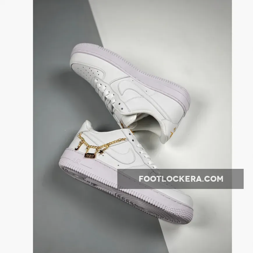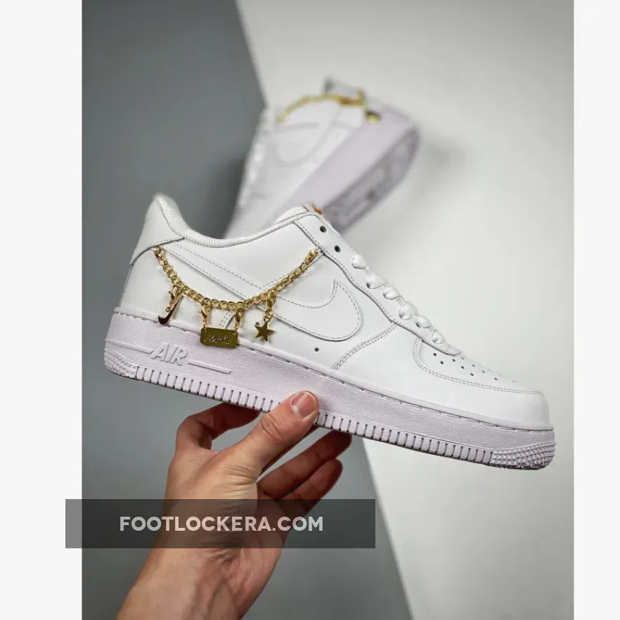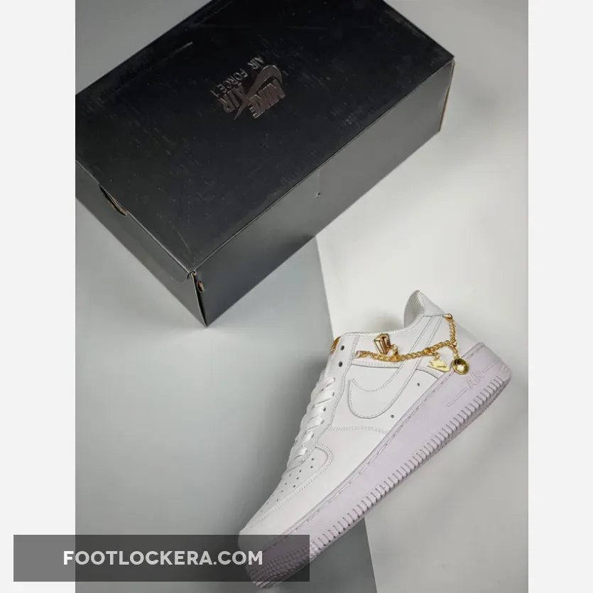 Joining Nike’s “Lucky Charms” collection is the Nike Air Force 1 Low LX Lucky Charms. This all-white Air Force 1 has a charming element dangling from the lateral collar.