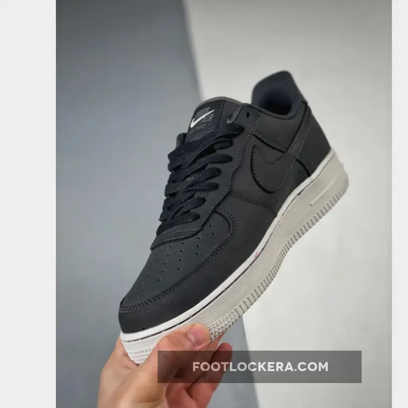 A twist on the iconic original Air Force 1, this pair of shoes has traded signature leather for a soft, dusty Off Noir nubuck, which is on the entire upper, tongues, and overlays. The Nike Air Force 1 Low LX Off Noir Black have several refined details, ranging from lightly waxed laces to contrast stitching, off-white sole units, and white staple textile liners.