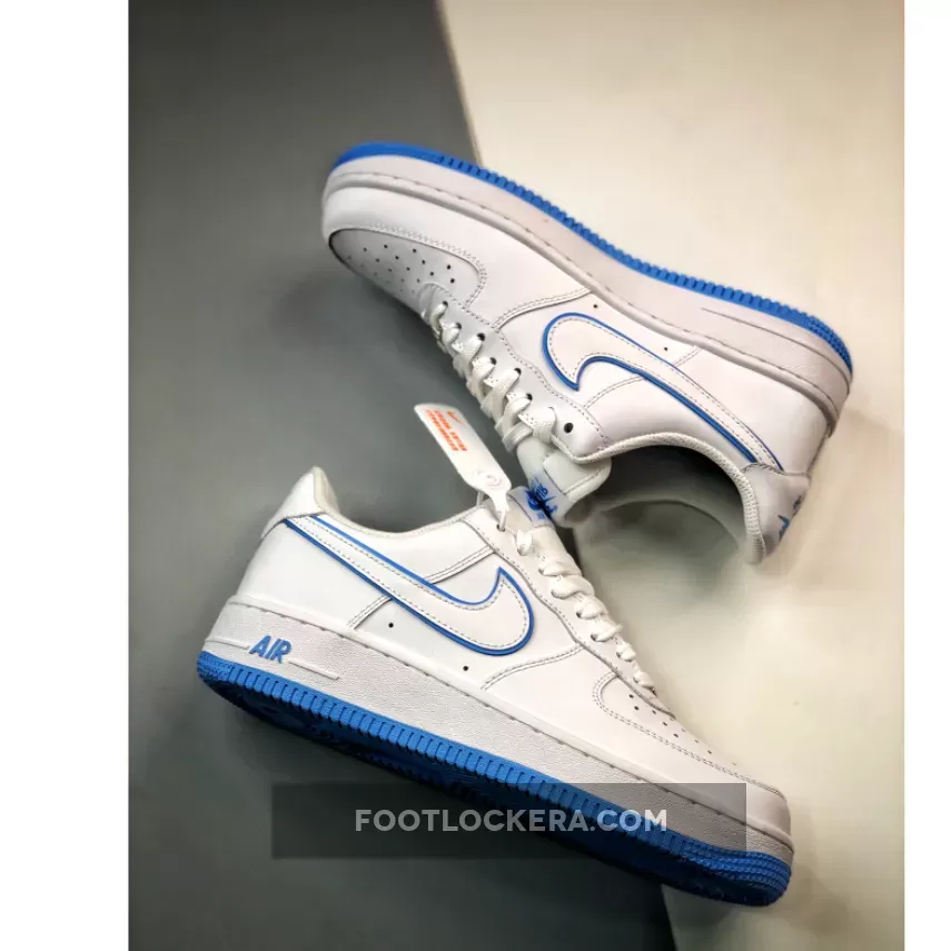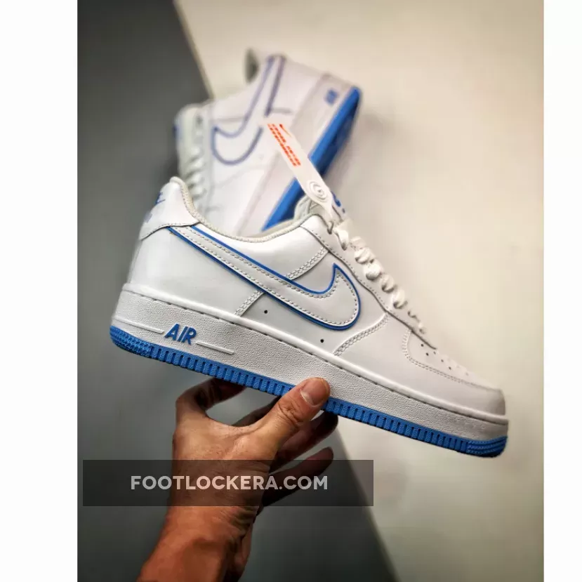 As the Nike Air Force 1 continues to celebrate its 40th birthday, the silhouette has a new iteration that gives its Triple White a blue twist. Check out the Nike Air Force 1 Low Outline White University Blue.This AF1 looks just like a Triple White, with white smooth leather on both base and overlays. The University Blue surprise comes in the form of the outline around the signature profile Swooshes on the medial and lateral mid-panels.