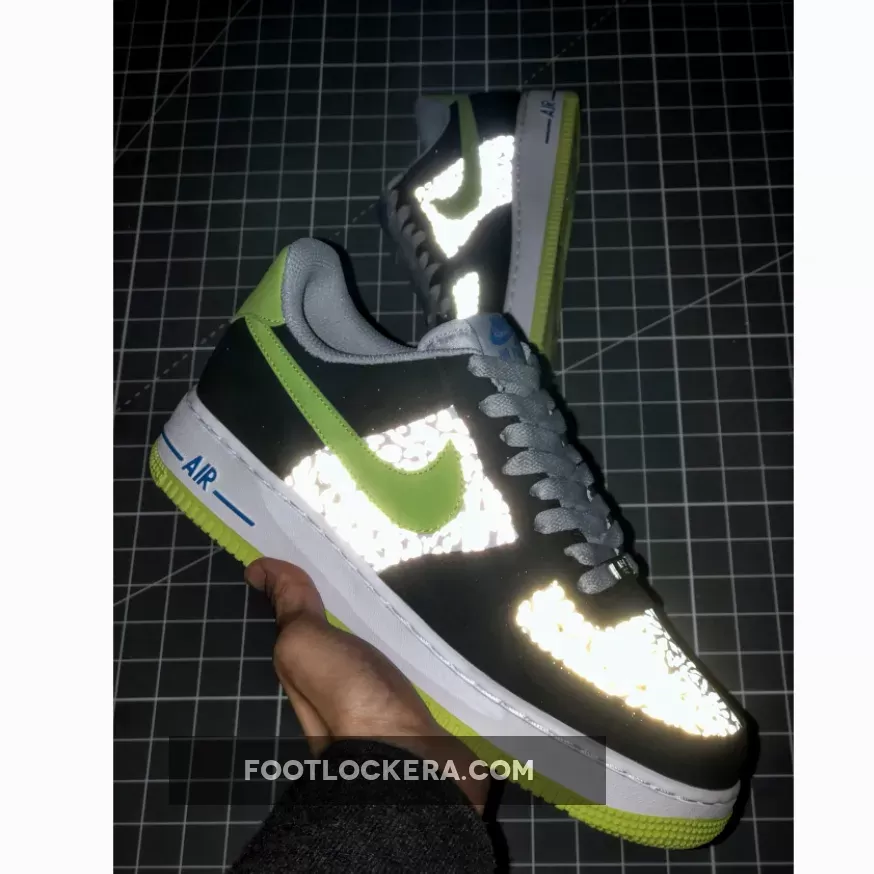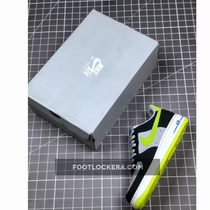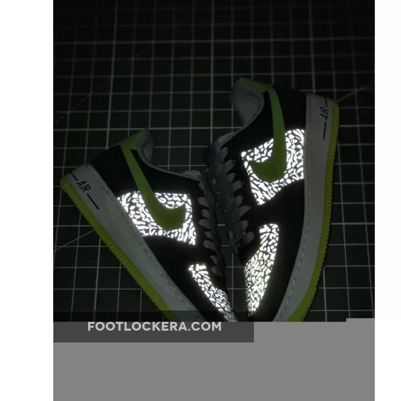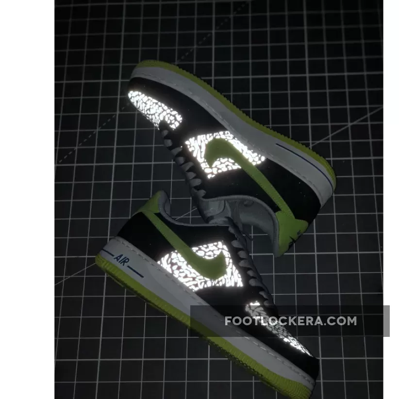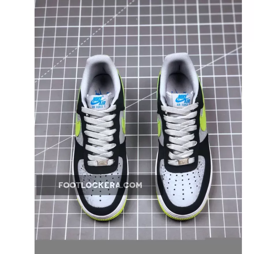 This Nike Air Force 1 Low comes in a reflect silver, volt and black colorway. Featuring a cement print reflect silver and black nubuck upper with volt accenting the Swoosh on the sides and outsole.