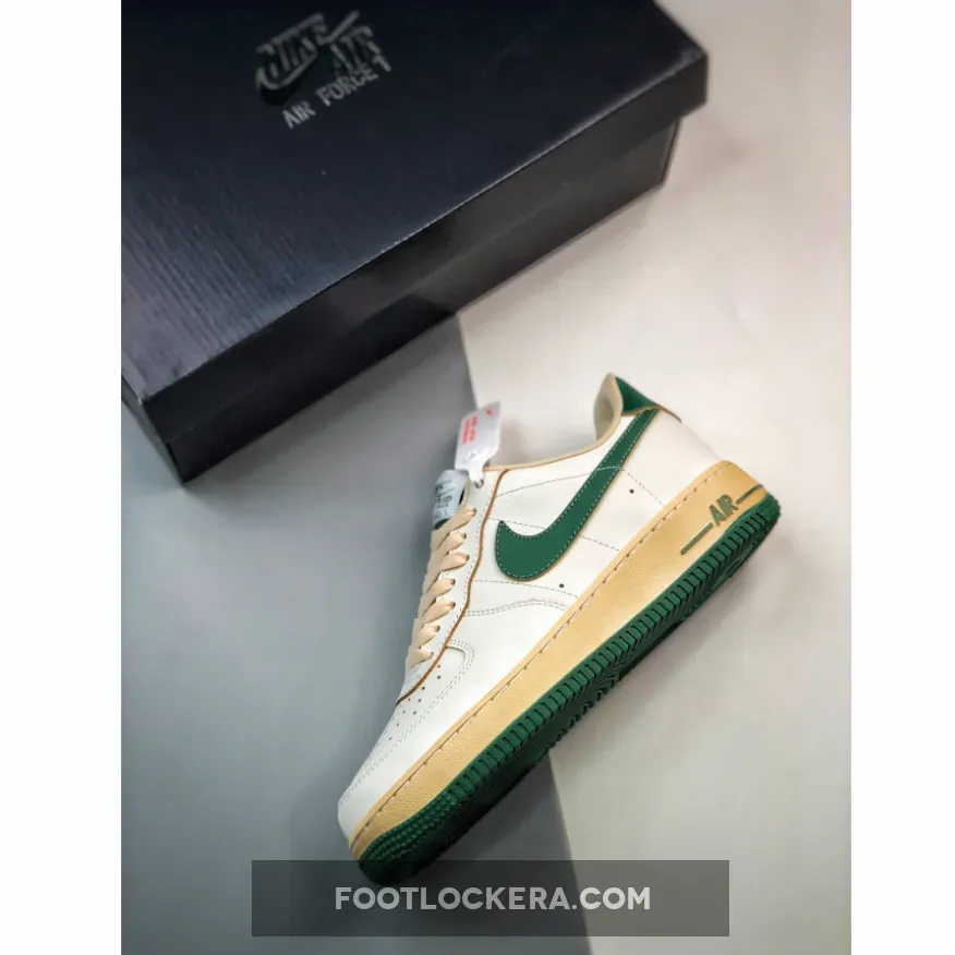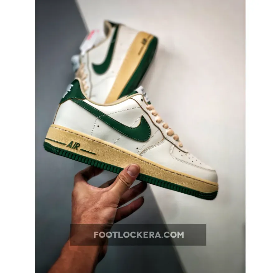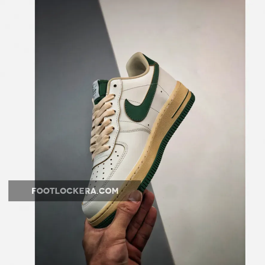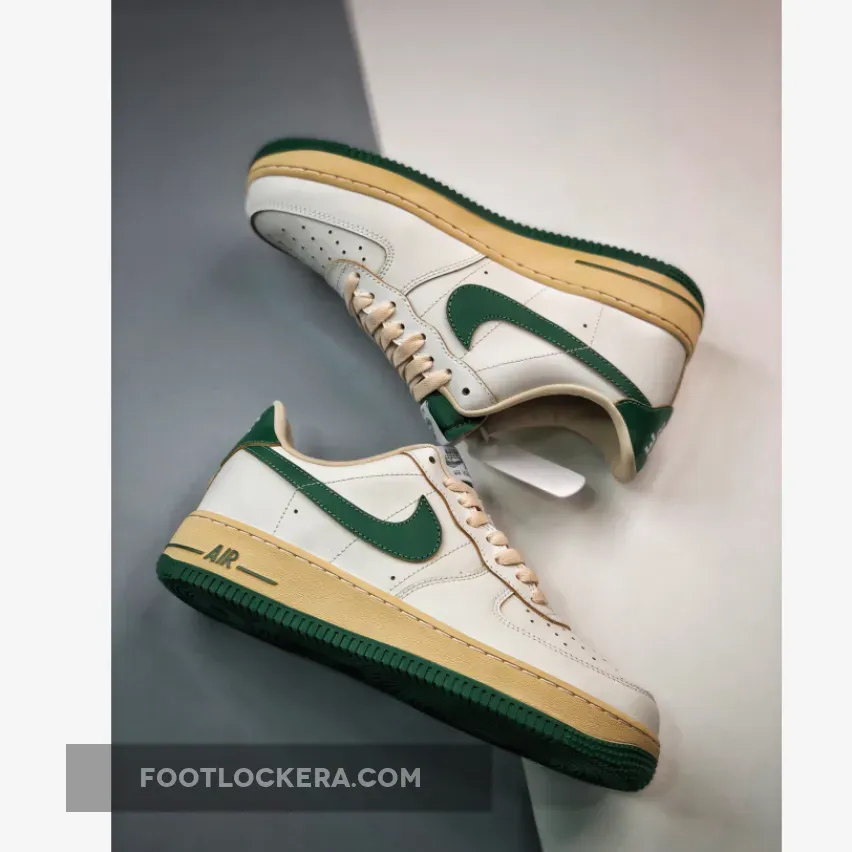 The Nike Air Force 1 has been around for 40 years and has remained pretty much unchanged since, apart from a few remixes of the silhouette for women. This iteration goes back to the sneaker’s roots and offers up a vintage design. Say hello to the Nike Air Force 1 Low Gorge Green Sesame. A dark green rubber outsole matches up to the Air branding on the aged midsole and Swooshes on the medial and lateral sidewalls. The yellowed laces match to the midsole, with the white upper also offering a creamy, dyed look. The tongue appears in green, as well as the heel panel, and the branding stands out in white. Perforations are present, as usual, for breathability and comfort. To cop the Nike Air Force 1 Low Gorge Green Sesame, use the links on this page and make sure to keep it locked to Our Store Supplier for more Nike news and releases in the future.