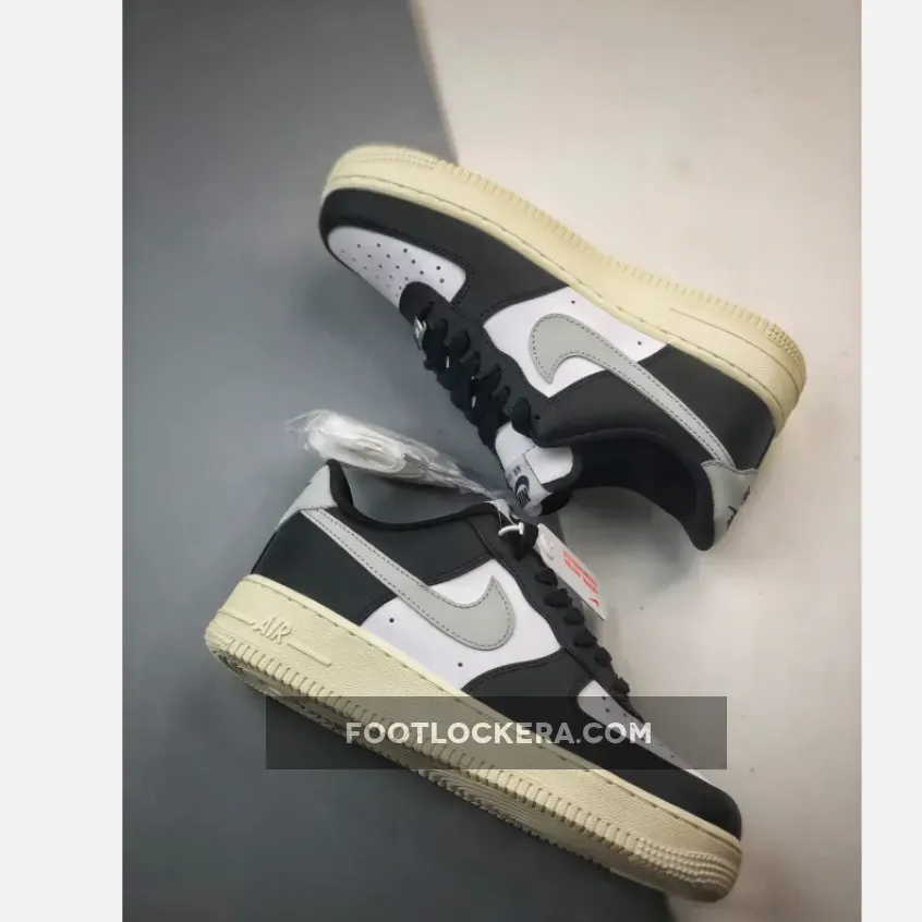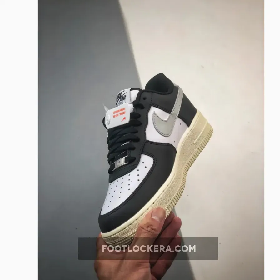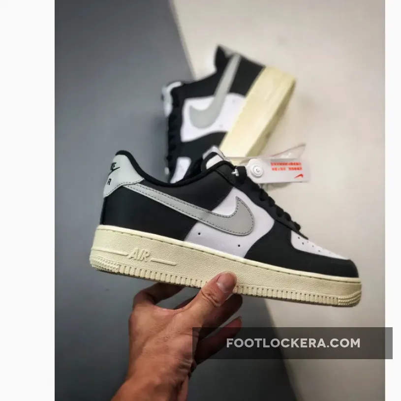 This offering of the Nike Air Force 1 Low comes constructed in a full leather build with perforations for breathability and mesh tongues and lining. It features a White upper with Black overlays, laces and inner lining detailed with Grey Swooshes and heel tabs. Black branding on the tongue labels, heels, and insoles atop a solid Sail AF1 rubber sole completes the design.