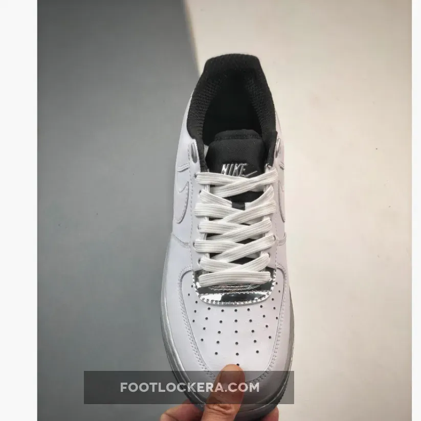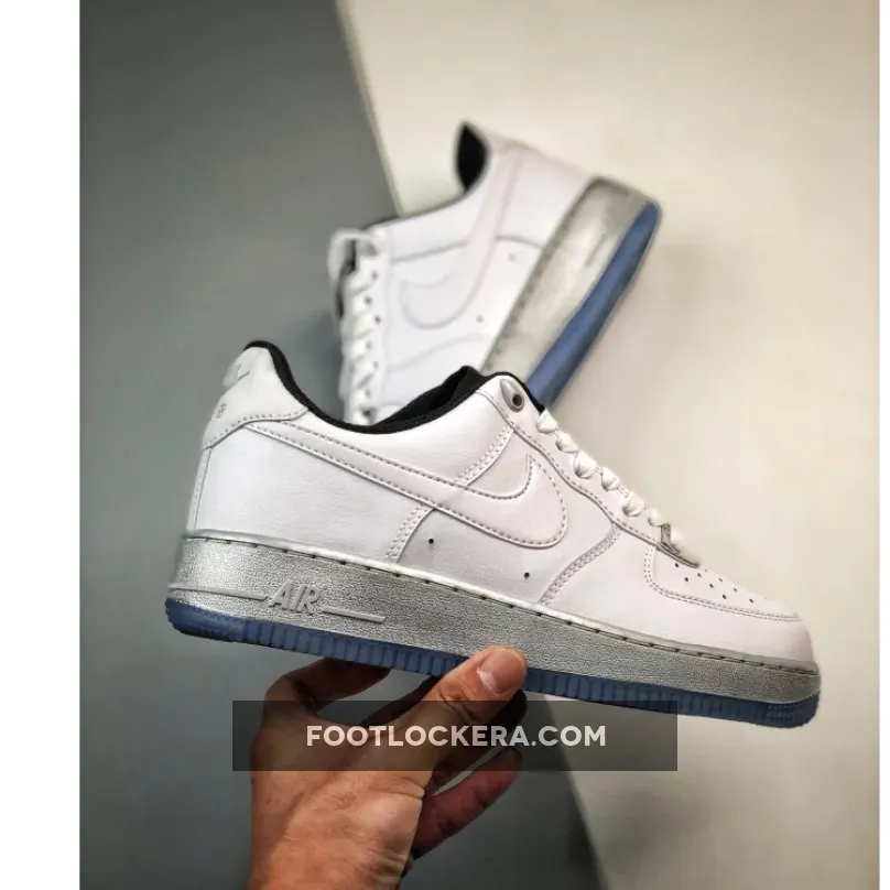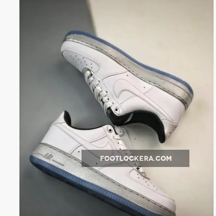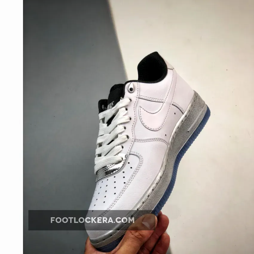 The Nike Air Force 1 Low White Chrome will charm you with its subtle shimmer accents that are eye-catching yet very wearable. It starts with a classic smooth white leather upper with strategic perforations at the foot and midfoot to ensure breathability. Meanwhile, the black tongue, collar, and inner lining boast an understated pearlescent touch. More dazzling accents come via the metallic silver Nike branding at the tongue tag and rear. Finally, this Nike Air Force 1 Low finishes with an icy blue outsole.