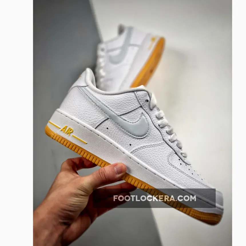 Whether you’re a seasoned sneakerhead or you’re new to collecting kicks, it’s a well-known fact that your collection isn’t complete without a pair of Air Force 1s. Originally developed as a basketball shoe by Bruce Kilgore in 1982, the classic white sneaker has become a fan-favourite ever since, and the basketball-turned-lifestyle silhouette is up there as one of the most iconic styles of all time. The Air Force 1’s incredible commercial success has allowed Nike to experiment with the model, meaning the AF1 line-up is constantly being updated with new colourways, collabs and themed packs. The latest pair to join the roster is this Nike Air Force 1 Low “White/Yellow/Gum”, so here’s a closer look at the pair.The “White/Yellow/Gum” AF1 manages to elevate the usual “Triple White” colourway with a couple of subtle details. While the base remains a fresh white, tumbled leathers add a premium look and feel, whilst smooth leather Swooshes still manage to stand out on the white-on-white uppers.
