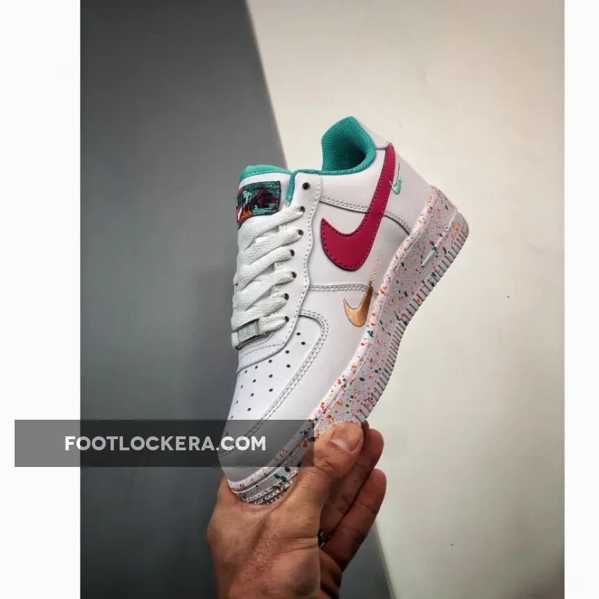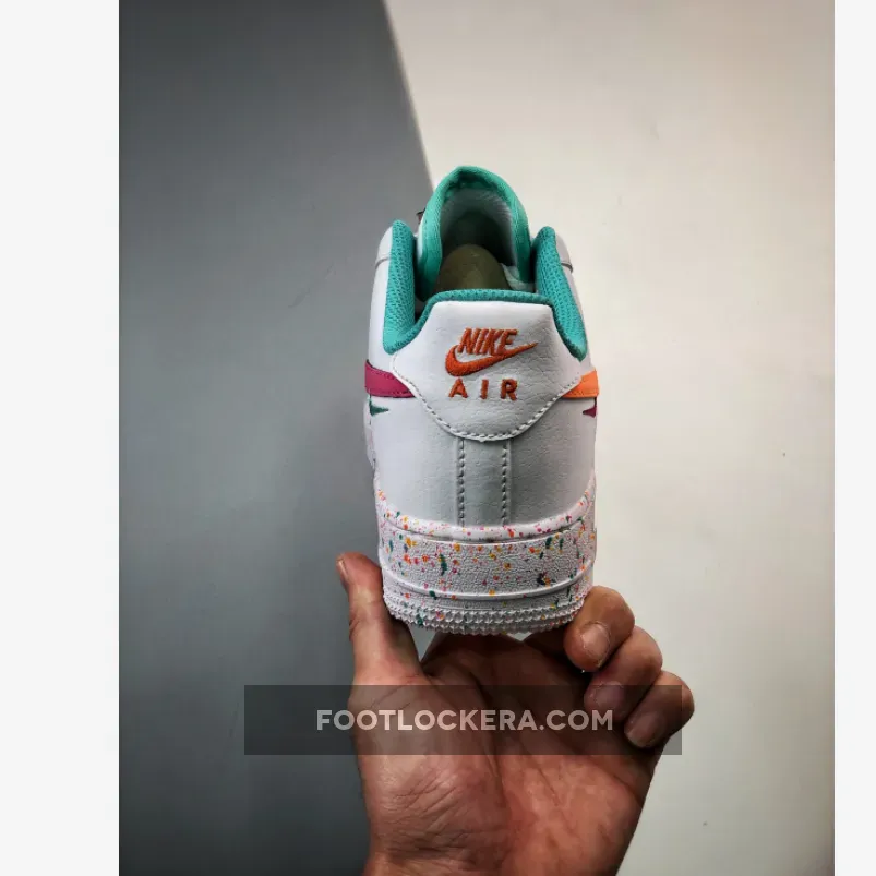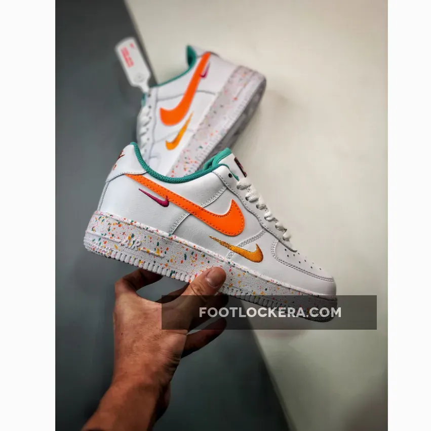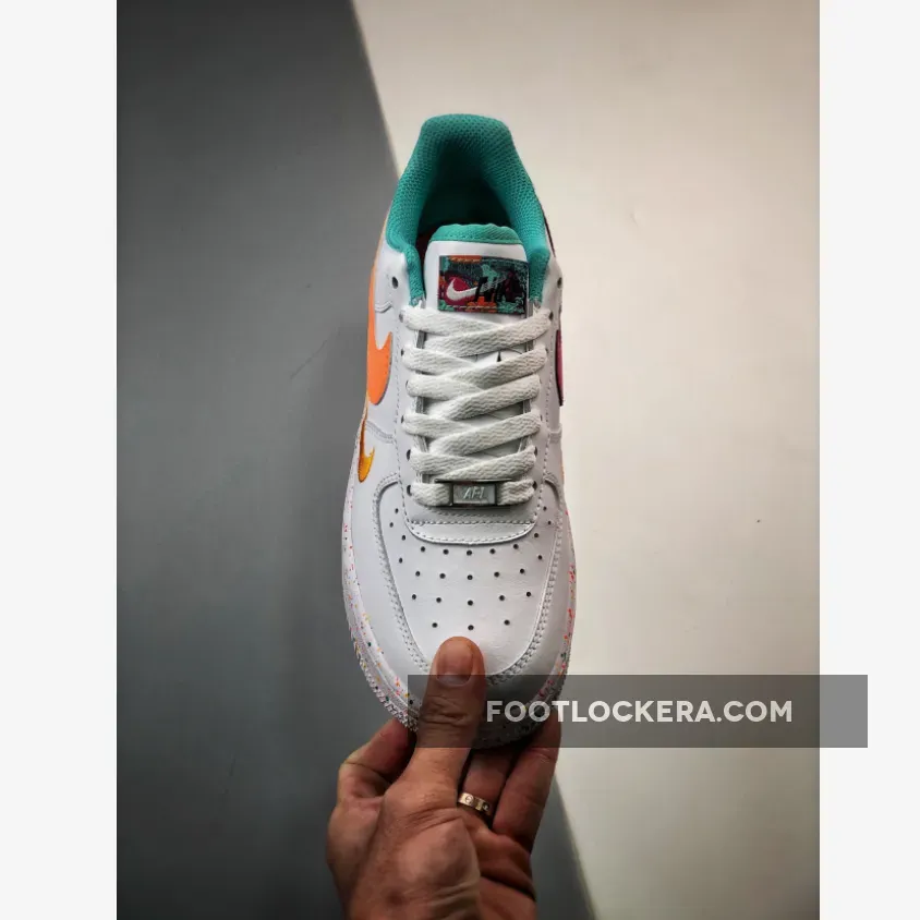 AF1 but make it extra fun. The Nike Air Force 1 Low GS White Teal begins with a crisp smooth white leather upper which includes the perforated toe, quarters and overlays. It is then decorated with playful additions such as the triple Swoosh design which sees the side panels featuring a leather Swoosh — orange for the lateral side, and pink for the medial side — with tangerine and berry red embroidered Checks on its side. The shoe is further brightened up by the teal lining along the tongue and the inner portion.