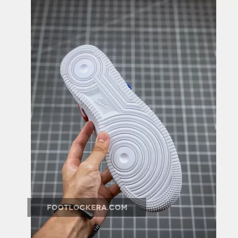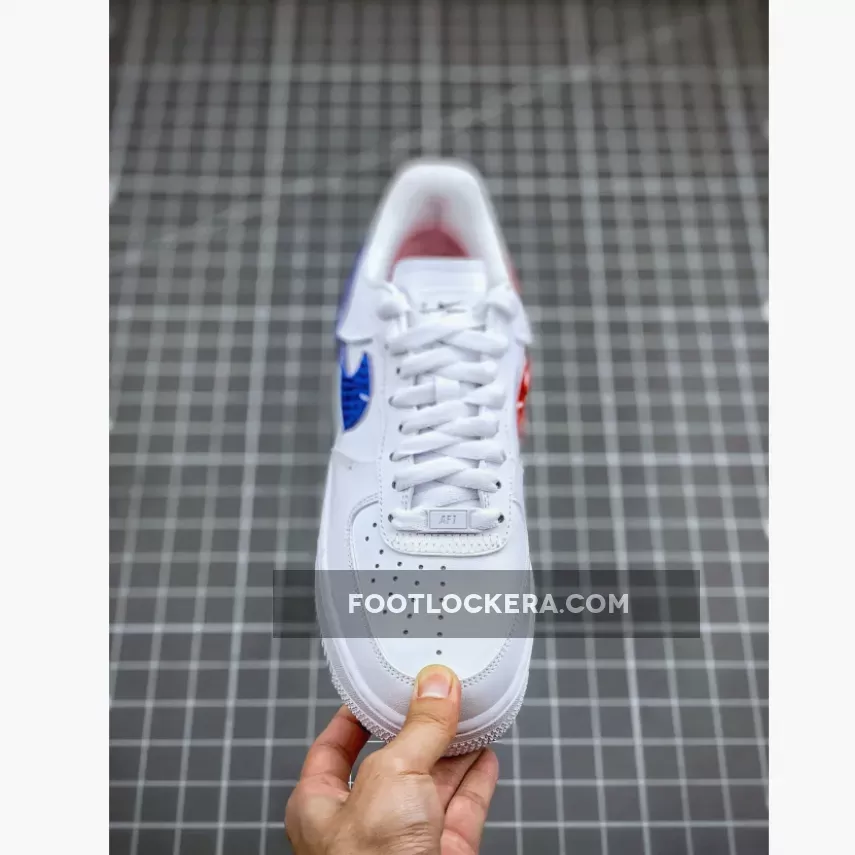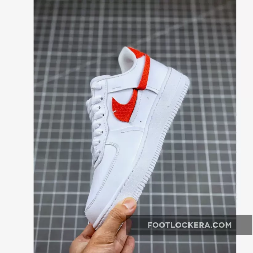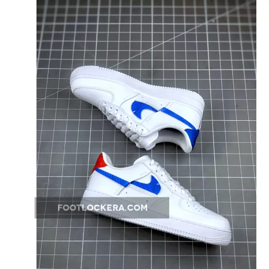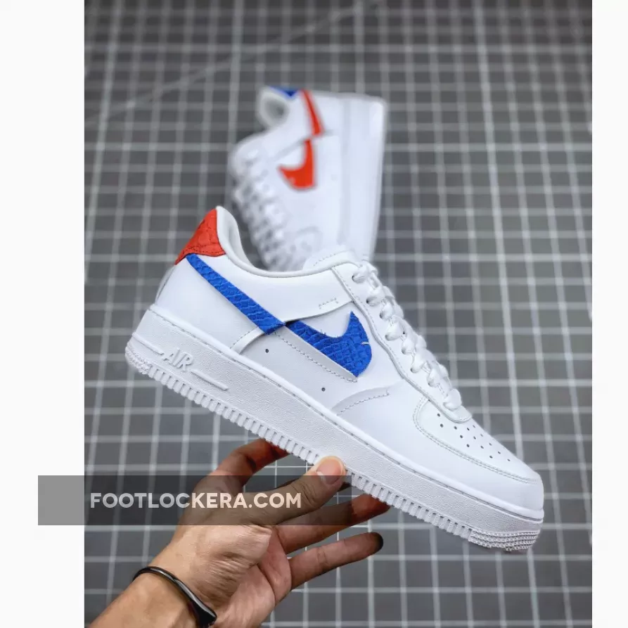 Looking closer this Air Force 1 comes with White leather on the upper while sticking out is the alternating Red and Blue Swoosh logos and heel overlay. Following it comes with suede Snakeskin material which gives them an interesting look. Other details includes an inside-out tongue label while White covers the midsole and rubber outsole.