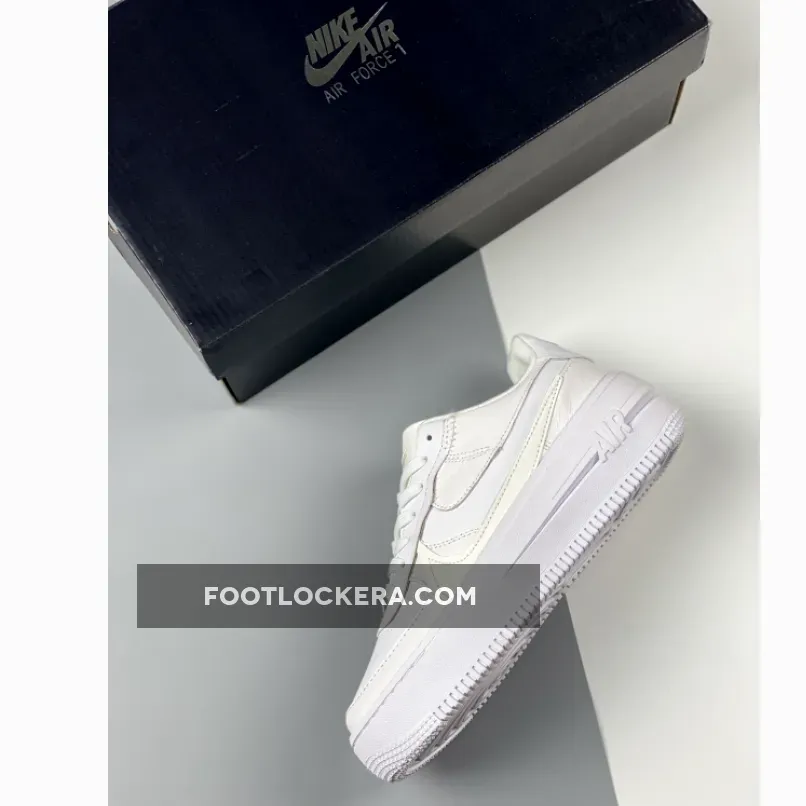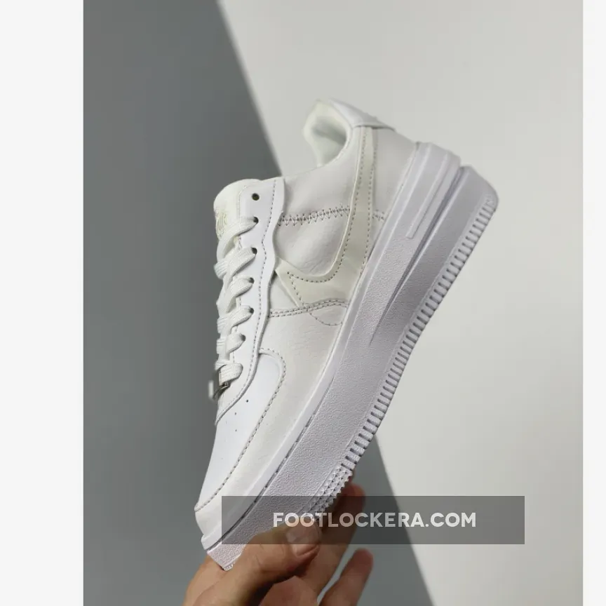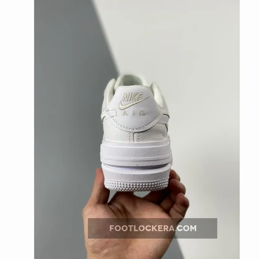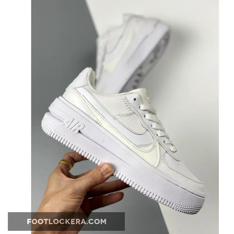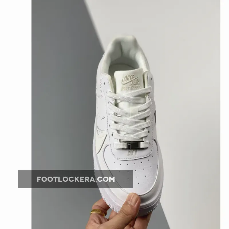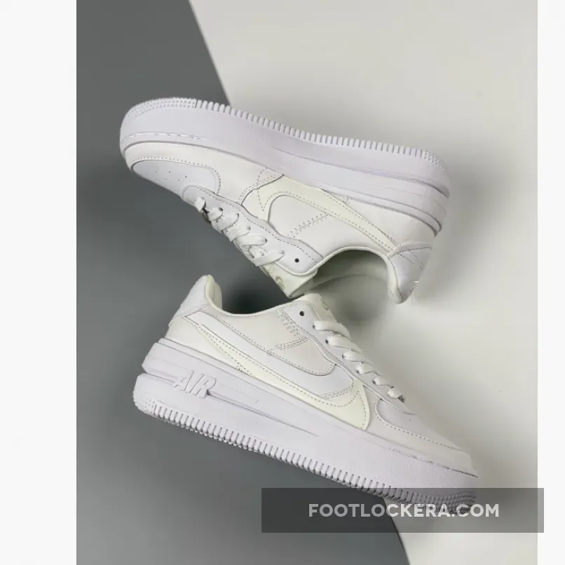An angelic new Nike Air Force 1 PLT.AF.ORM is coming your way. Get ready for the Nike Air Force 1 PLT.ORM Triple White. This AF1 features a “White/ Summit White/ White” colour palette. The upper is covered with white pebbled and smooth leather from heel to toe. If you look closely at the lateral side of the shoe, you’ll notice a subtle double Swoosh. The bottom Swoosh is the more traditional sewn-on smooth leather Swoosh in Summit White. On top of it is a clever cutout Swoosh. On the medial side, the Swoosh is layered over by the mudguard and the heel tab. Like a cherry on top, a silver deubré with a micro mini Swoosh graces the laces. Snag the Nike Air Force 1 PLT.