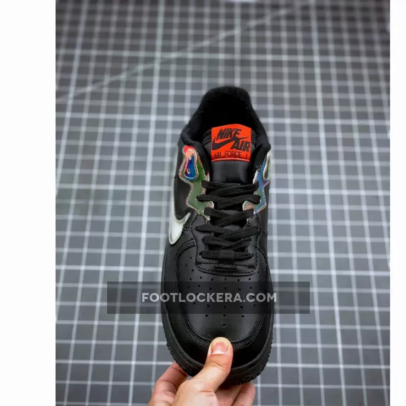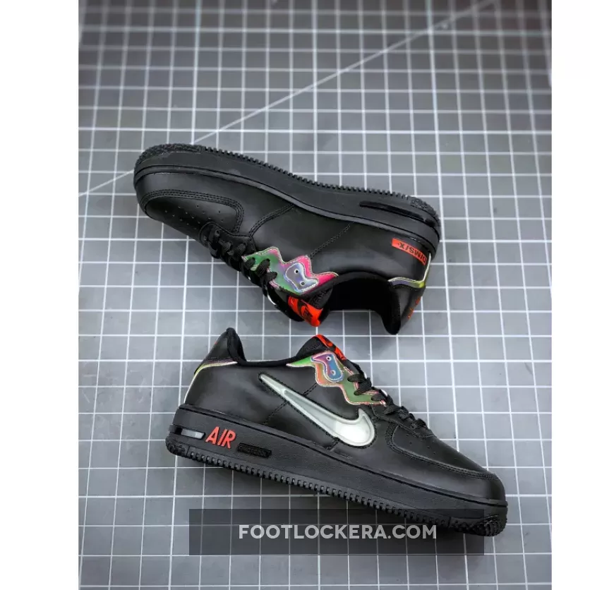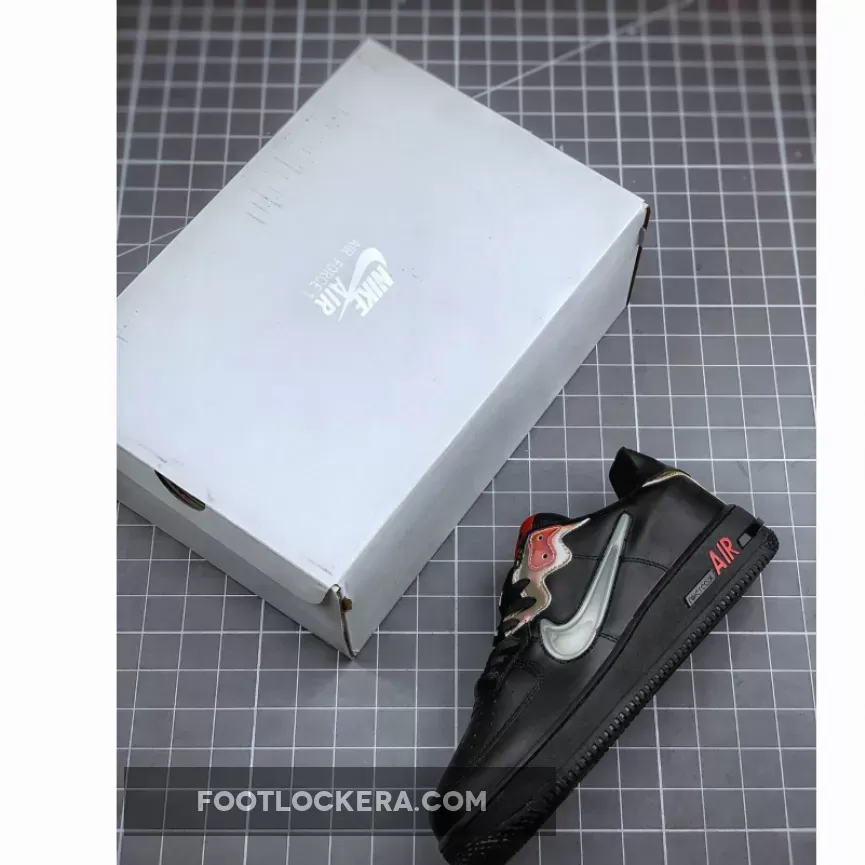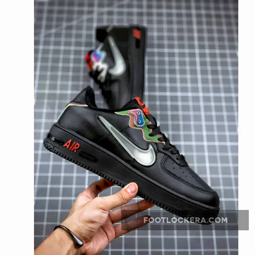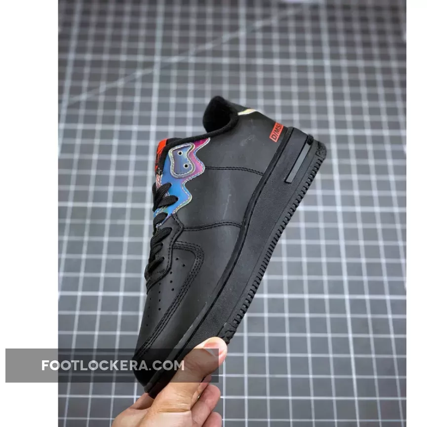 Going over this Nike Air Force 1, it features Black leather on the base while iridescent lands on the overlays across the eyestay and heel. In addition we have Habanero Red accents on the tongue, heel tabs, D/MS/X branding on the medial side, insoles and ‘AIR’ on the midsole. Finishing the look is a React cushioned midsole.