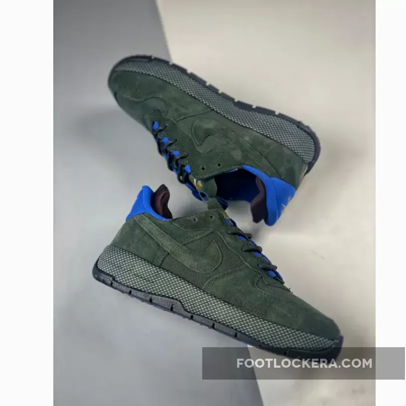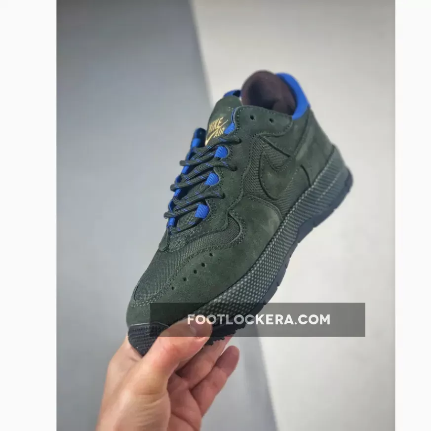 this Nike Air Force 1 Wild is geared towards hikers as the sneaker takes on a more durable and rugged construction. The Nike Air Force 1 Wild begins with a ballistic mesh base along with durable nubuck noted on the overlays. Additional standout details include pull tabs on the tongues, an added inner bootie for a snug fit, perforations and exposed stitching on the medial and lateral forefoot, a textile-wrapped midsole, and a trail-ready rubber outsole for optimum traction. This colorway gets covered in two tones of green all throughout the upper along with Deep Royal Blue and Brown accents for that fall-inspired palette;and subtle touches of “Campfire Orange” mark the outsole underfoot.