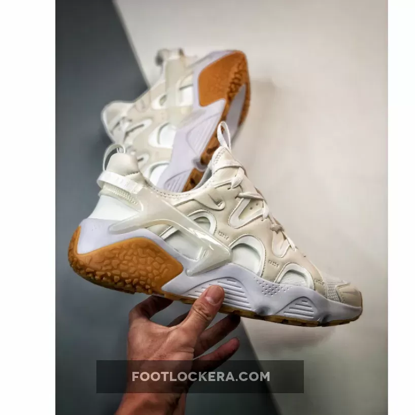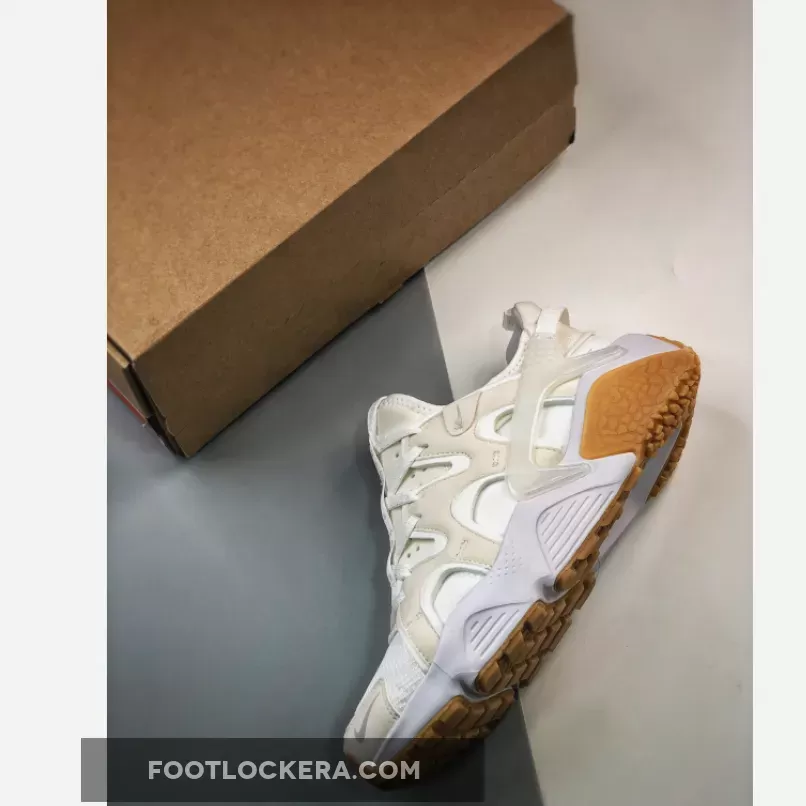 A more statement-making and edgy version of Tinker Hatfield’s sandal-sneaker hybrid design, the Nike Air Huarache Craft Sail Gum is minimalist yet bold at the same time. It features an off-white neoprene-like bootie that matches the similarly coloured mesh toe box and wavy suede overlays. More noteworthy details include the convenient pull tab and the milky semi-translucent heel clip. This Nike Air Huarache Craft finishes with a soft colourless midsole and textured gum rubber outsole with fun-looking lugs.