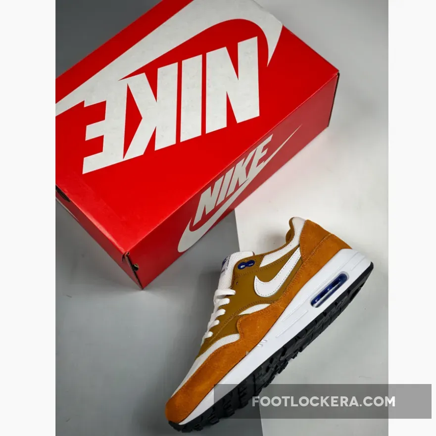 The Atmos x Nike Air Max 1 ‘Curry’ is a masterpiece of design, featuring a dark curry, sport blue, black, and true white color scheme that’s as stylish as it is timeless. Made from premium suede and nubuck, the shoe’s upper exudes a sense of sophistication, while the air bubble unit in the heel provides maximum comfort and support. With a mix of mesh, suede, and nubuck materials, this shoe is both durable and visually striking.