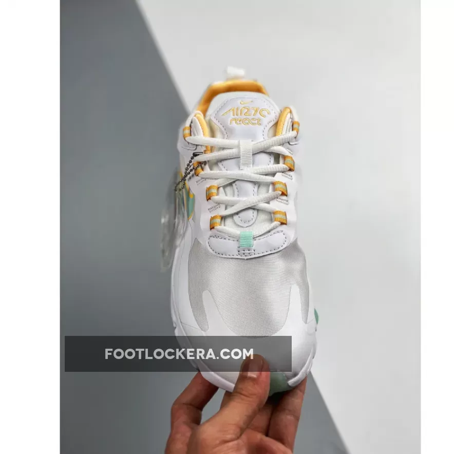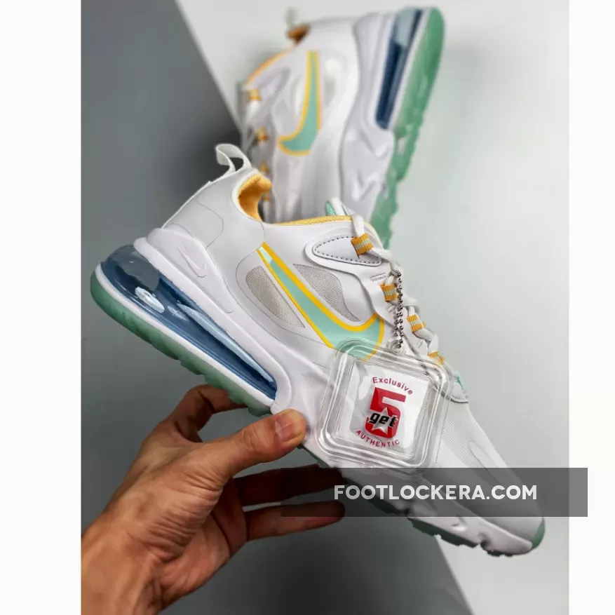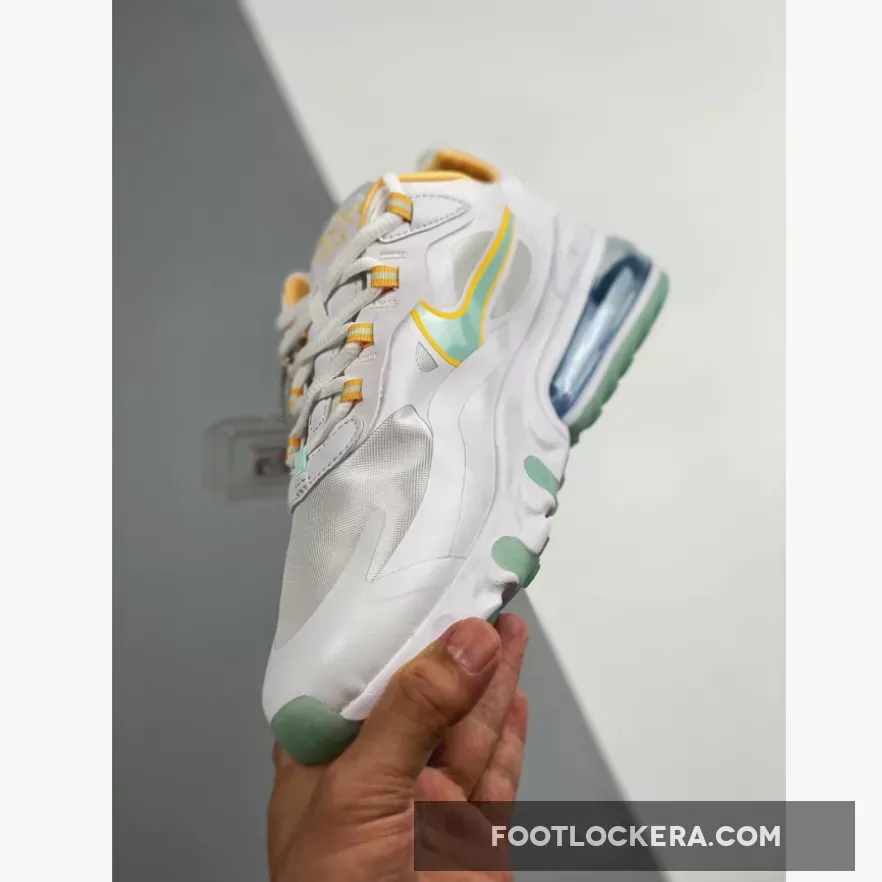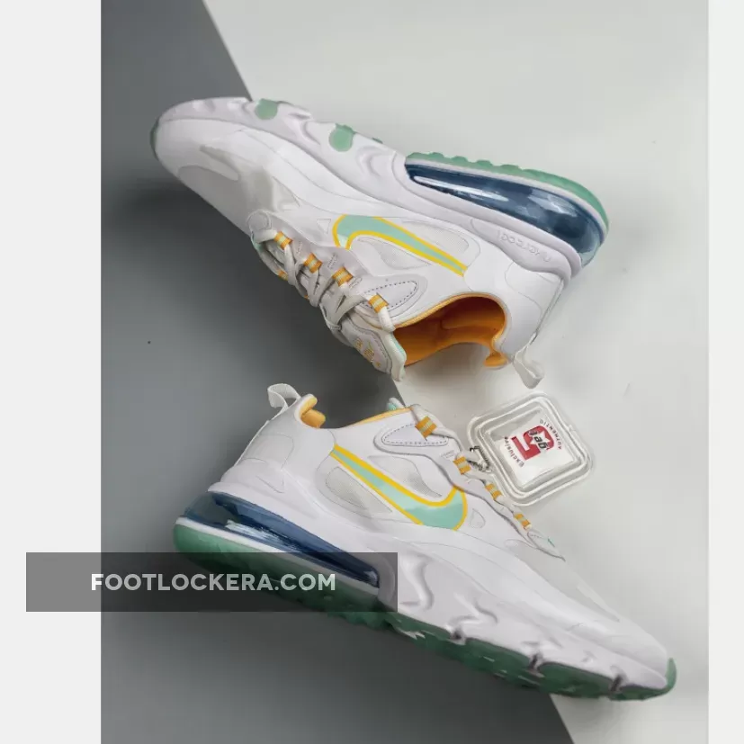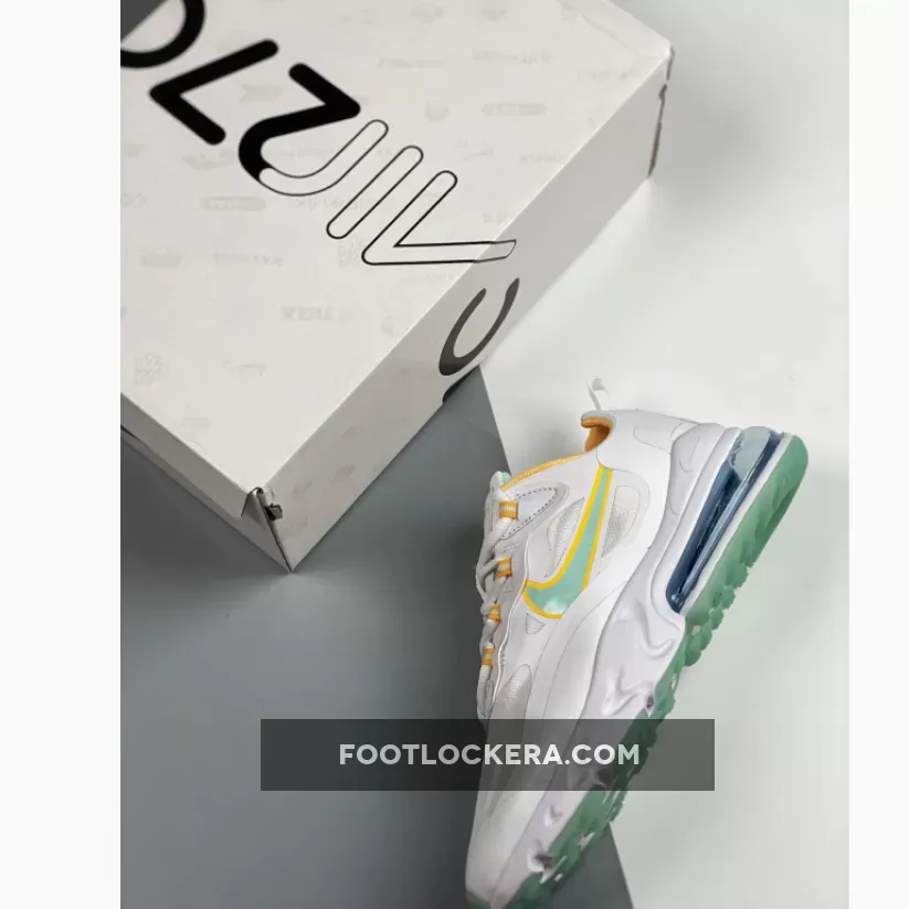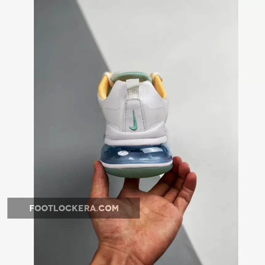 This offering of the Nike Air Max 270 features a clean White upper highlighted with soft Yellow and Blue contrasting accents giving off a summer vibe.