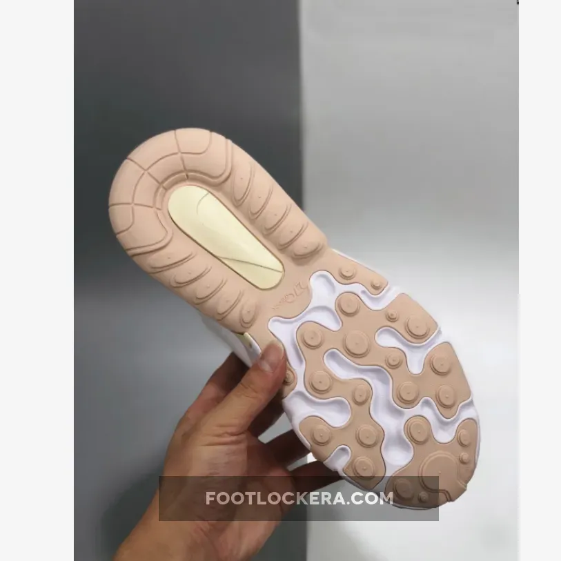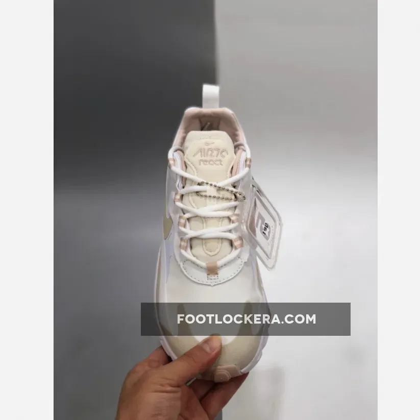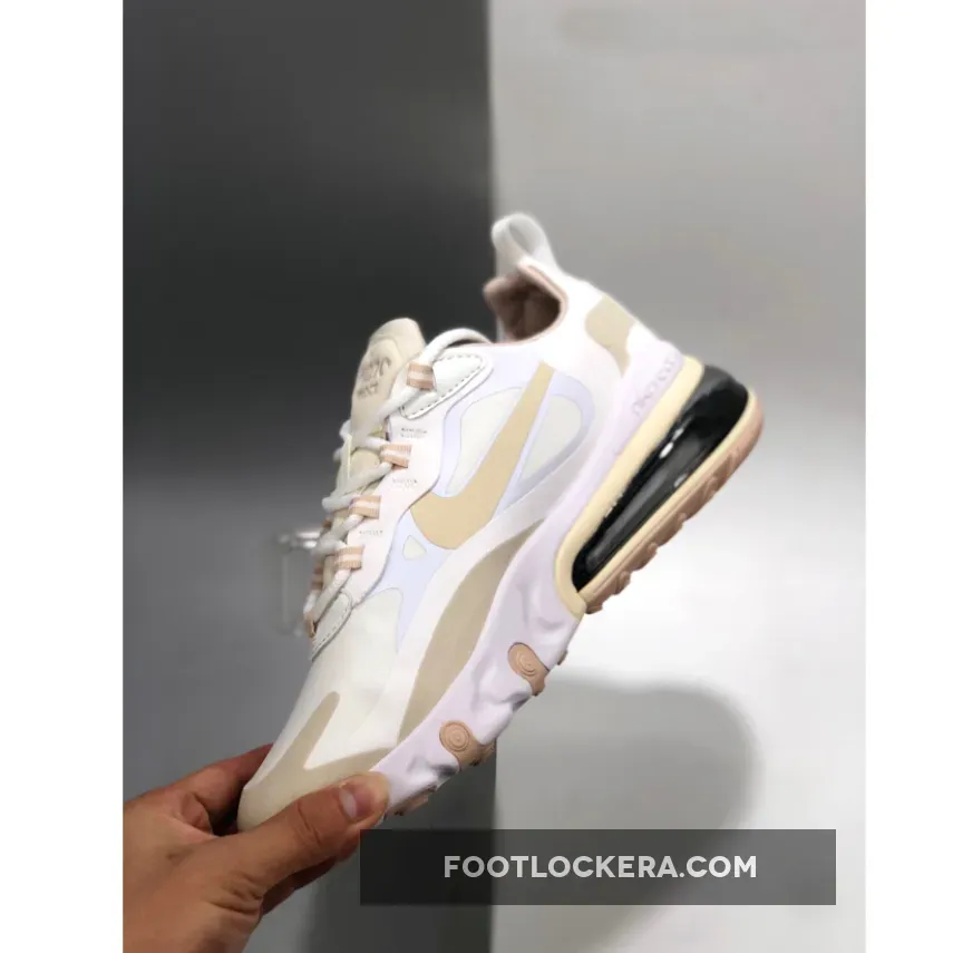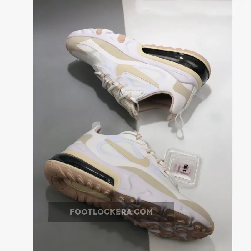 Dressed in a Summit White and Light Orewood Brown color scheme. This Nike Air Max 270 React features a White base with Tan overlays.