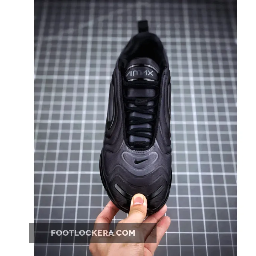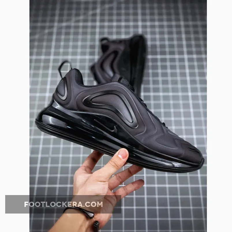 This iteration of the Nike Air Max 720 features an all-Black upper with matching Black plastic molded overlays. Finishing off the simple, yet sleek design is an all-Black 720 Max Air unit and outsole.