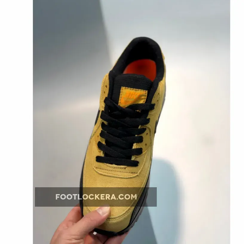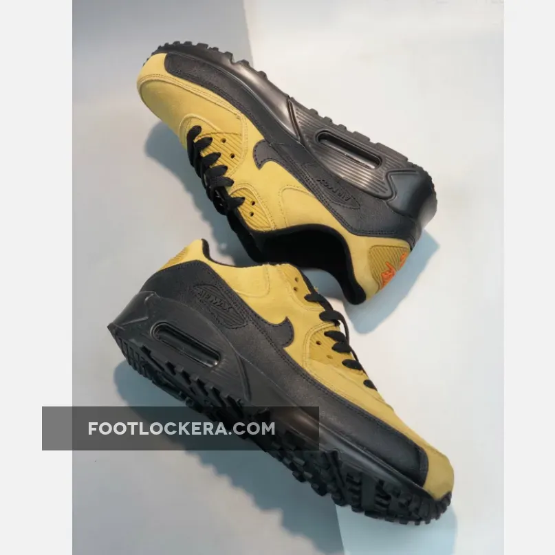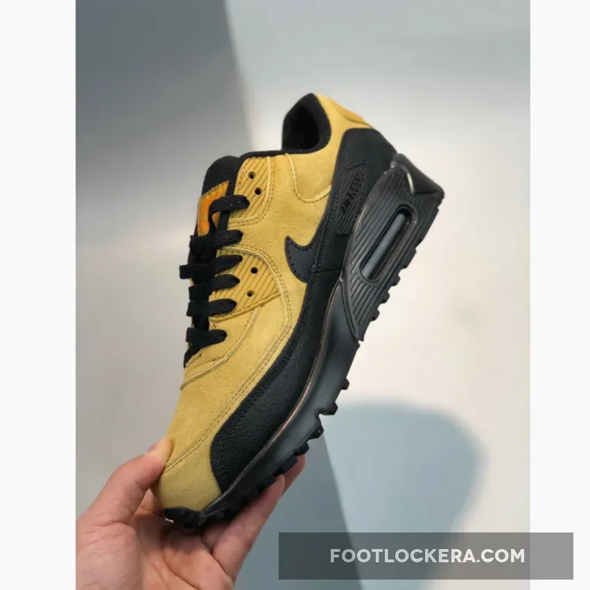 Dressed in a Black, Wheat Gold, and University Red color scheme. This Nike Air Max 90 features a Wheat suede upper paired with Black overlays on the Swoosh and mudguard. Black continues on the tongue, laces, and sole, while having Red contrasting accents on the tongues, insoles, and heels.