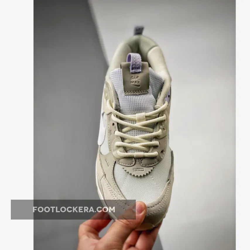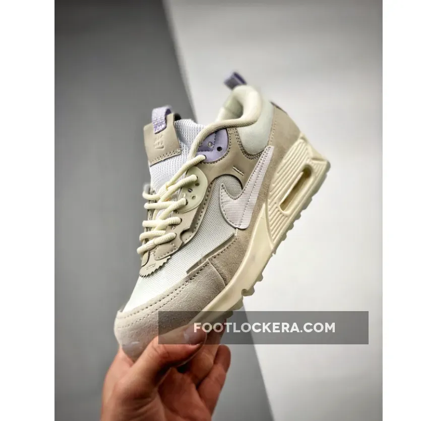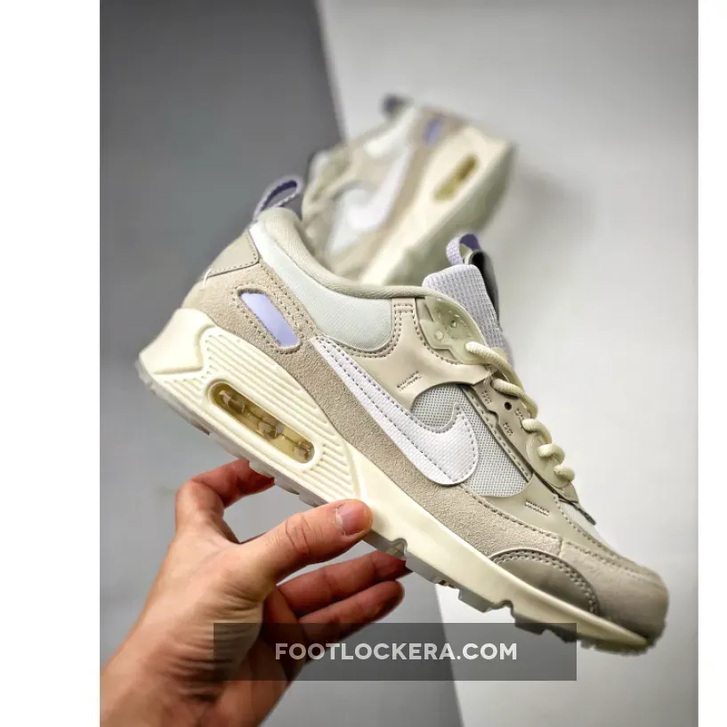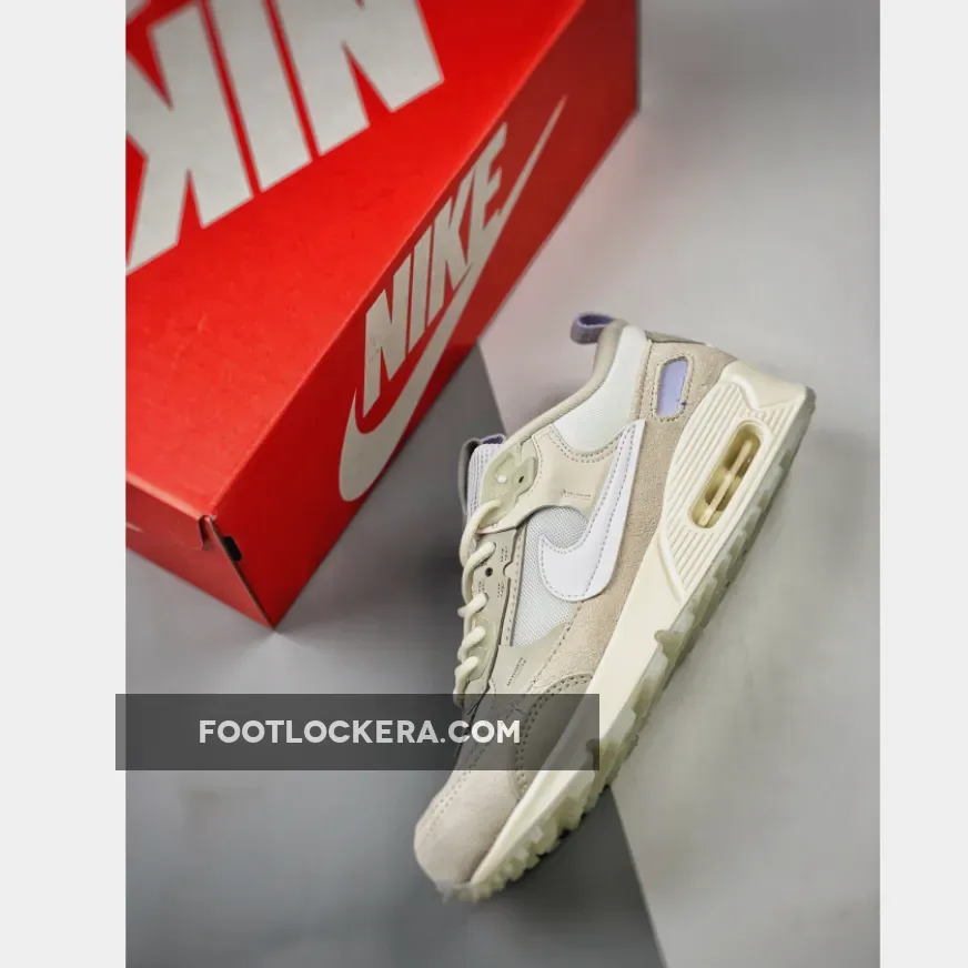 The 32-year-old Nike Air Max 90 has just dropped an angelic-looking iteration. Take a closer look at the Nike Air Max 90 Futura White Light Bone. This Air Max 90 Futura has a “Summit White/ Light Bone” colour scheme. The mesh base, the mesh tongue, the signature profile Swooshes on both sides of the shoe, and some of the synthetic overlays on the upper are in the immaculate hue of Summit White. The suede wraparound overlays on the lower half of the shoe, on the other hand, are in the shade of Light Bone.