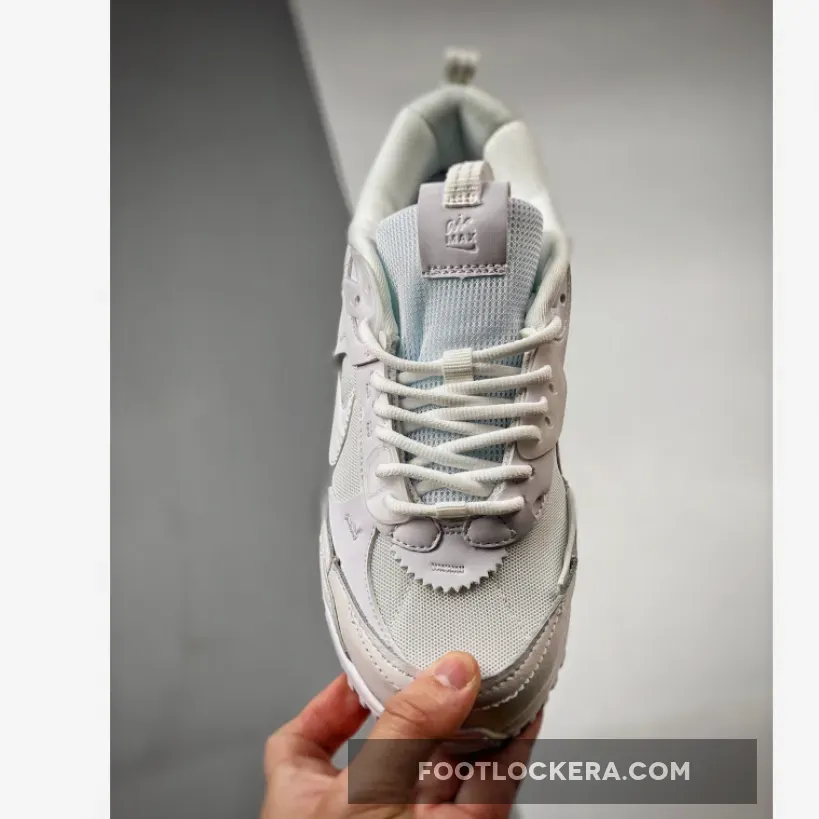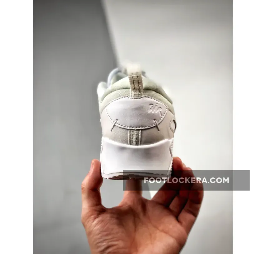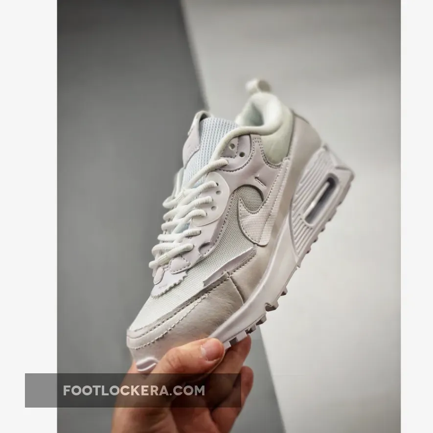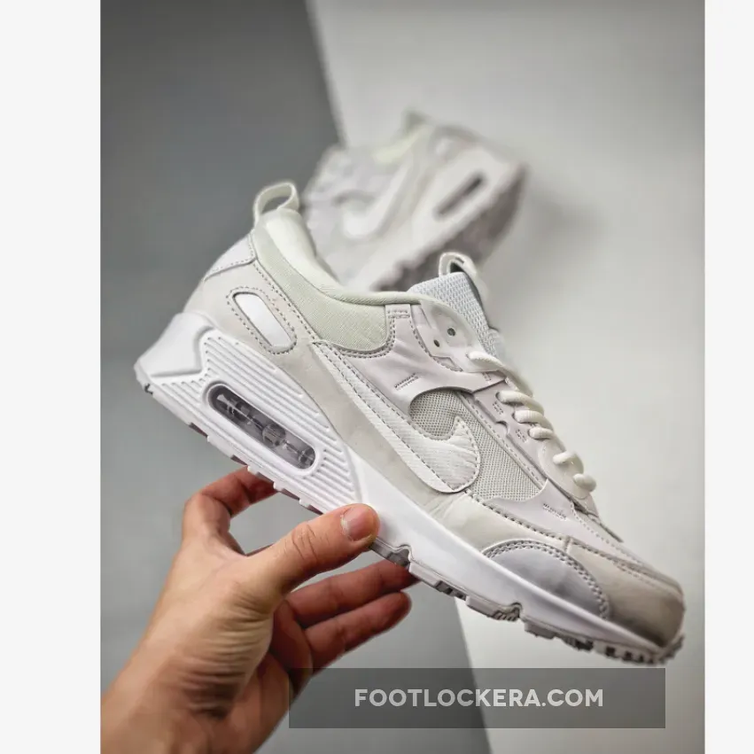 The Nike Air Max 90 has been delivering high-performance running since 1990. This silhouette now joins Nike’s “Scrap” collection, making sure factory room remnants are sustainably reused. Meet the Nike Air Max 90 Futura Triple White. This Air Max 90 is covered completely in pure white, from heel to toe. The base is breathable mesh, matching the tongue. A mix of leather, synthetic material, and TPU accents give the shoe a scavenged patchwork aesthetic. A tiny black Swoosh appears in a cutout near the lateral heel.