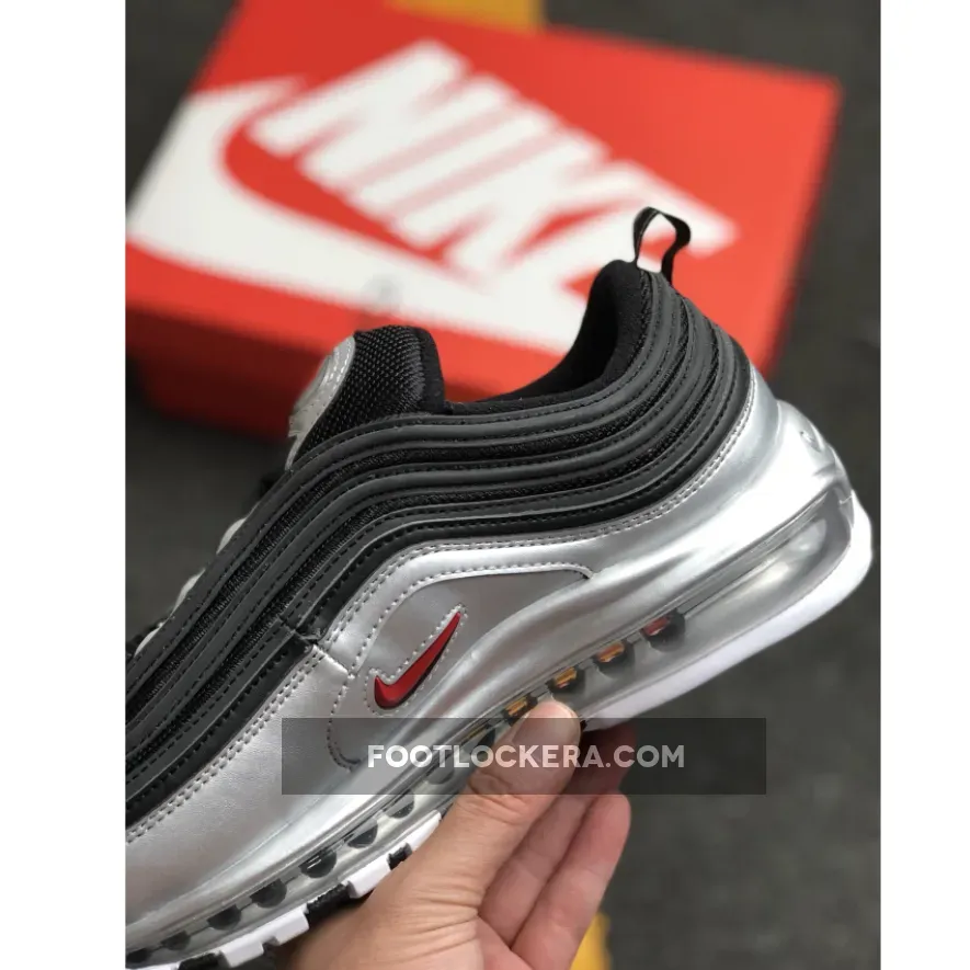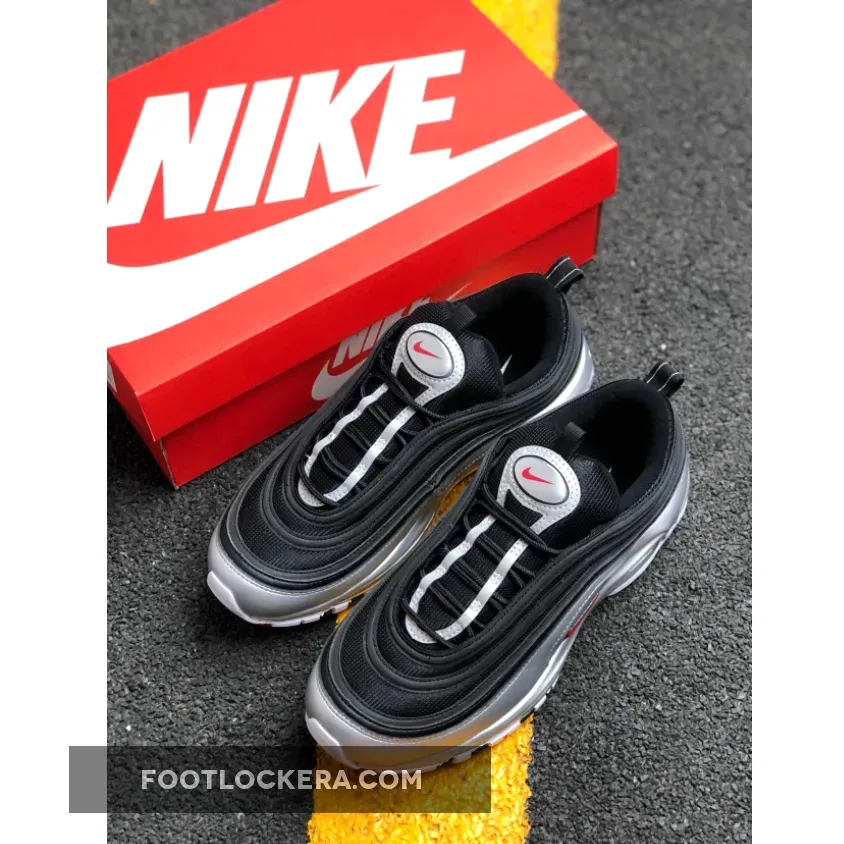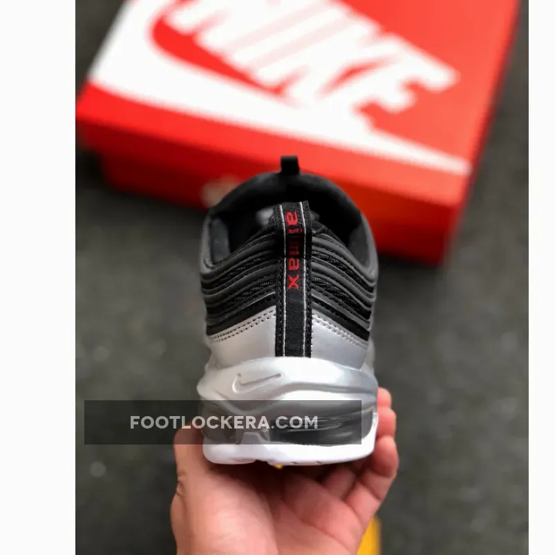 “I’m loving my new Nike Air Max 97 Black Silver ?! The sleek black upper with metallic silver accents is so sharp ?. The Varsity Red pops add a nice touch of flair ?. Comfortable too – perfect for daily wear or a night out ?. 4.5/5 stars from me ?”