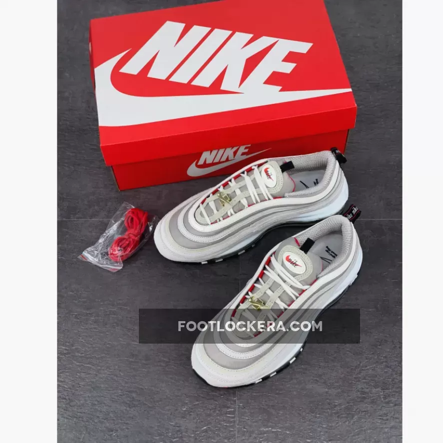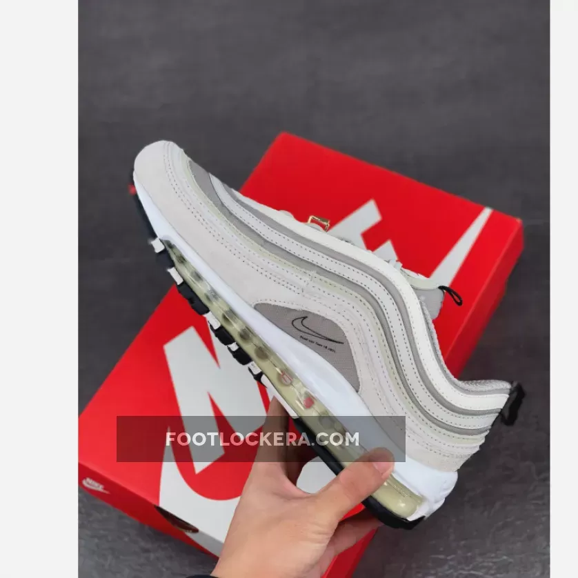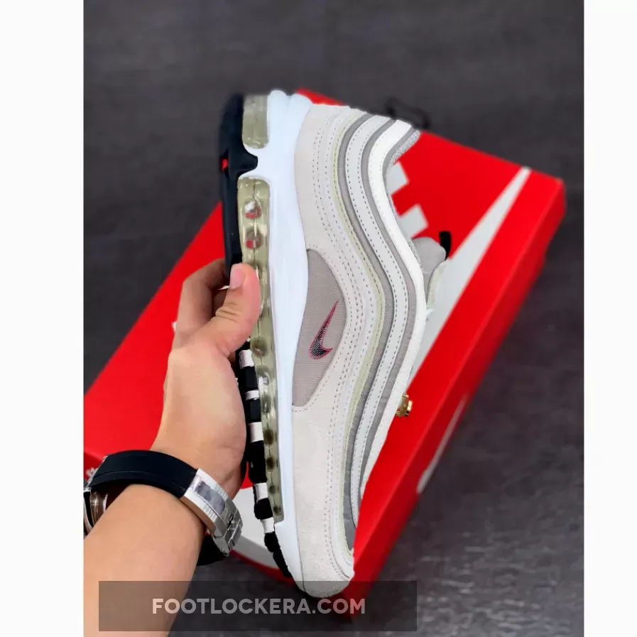 The Nike Air Max joins the brand’s “First Use” pack, celebrating 50 years of the Swoosh. The Christian Tesser designed-Nike Air Max 97 First Use White Black comes in neutrals with strategic pops of red.