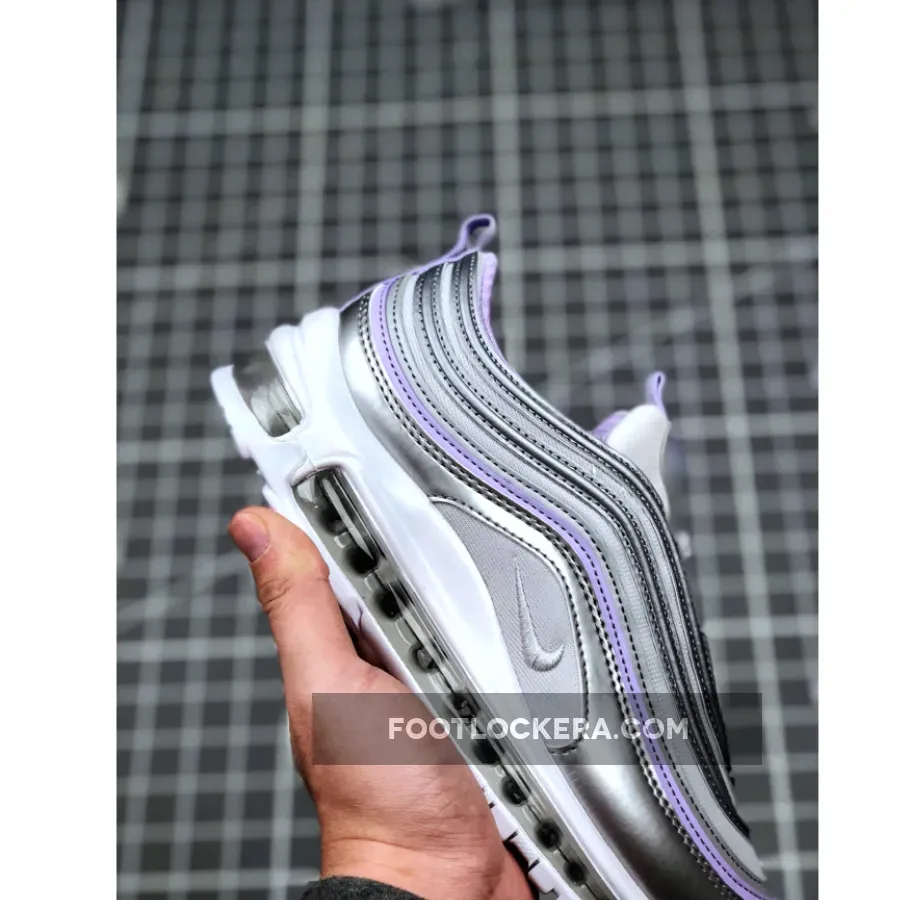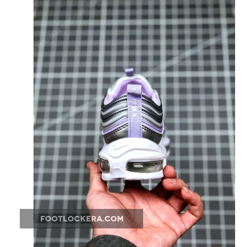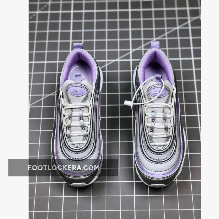 The Nike Air Max 97 SE Grey Silver Purple White offers a stylish & comfy design. The color scheme is eye-catching, while the Air Max cushioning delivers exceptional comfort. Durable materials & a functional outsole make it perfect for everyday wear. #SneakerGoals #Nike #AirMax #Comfort #Style