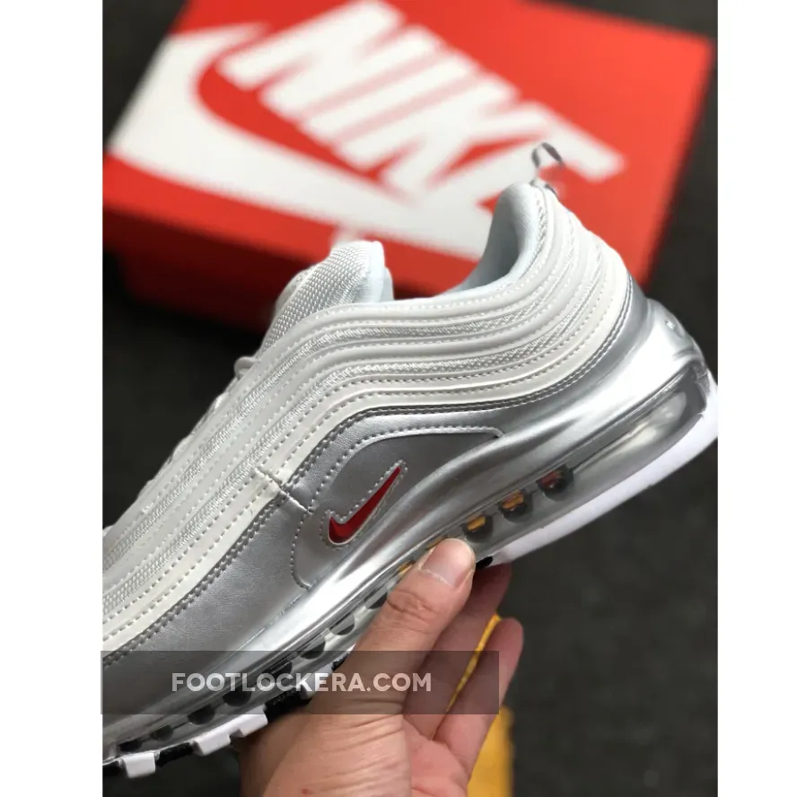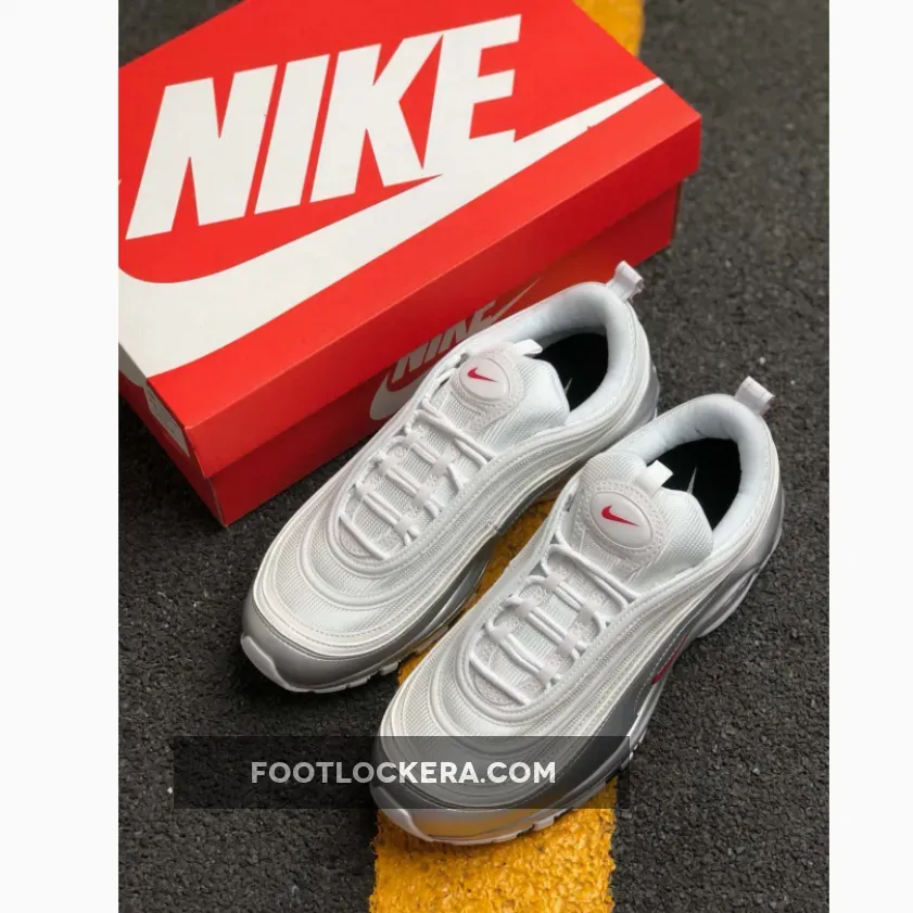 The Nike Air Max 97 Silver White delivers a stunning blend of style and comfort. The reflective silver overlays elevate the design, while the full-length Air Max cushioning ensures a smooth and responsive stride. Perfect for everyday wear or any casual outing. Highly recommended!