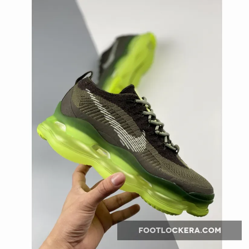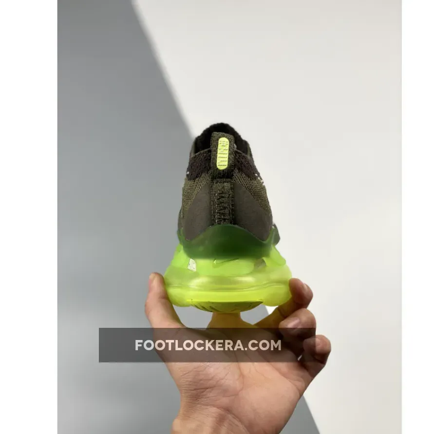 Featuring a full Flyknit upper that’s painted in a lush olive aura color palette, it’s made partly from recycled materials for an eco-conscious finish. The knitted upper features shades of brown while the laces and profile swooshes favor light green finishes.. Underfoot, the original Air VaporMax’s full-length Air midsole has been completely reworked from the ground up, resulting in a significantly chunkier look that’s sure to add a few inches to your height. Swoosh wheel logos on the sock liner reveal the sneaker’s recycled nature. As such, the Air Max Scorpion joins the brand’s sustainability efforts.