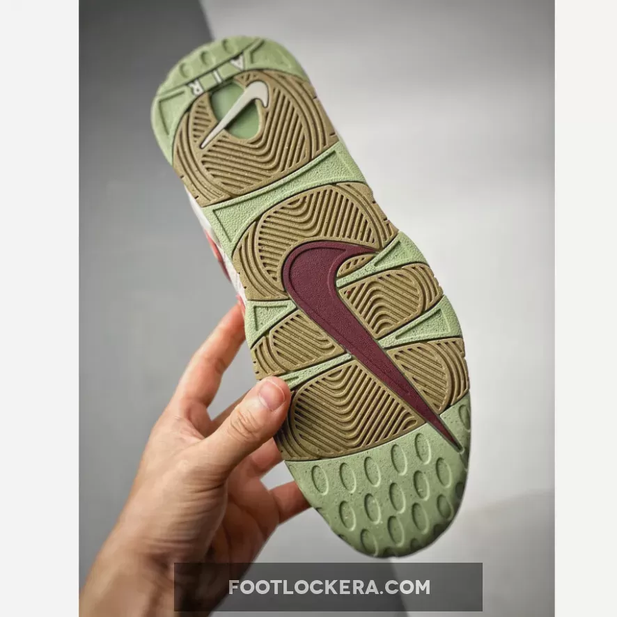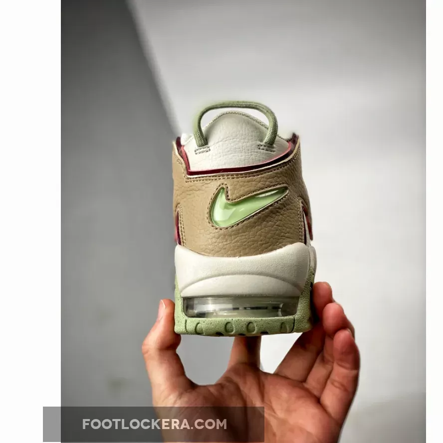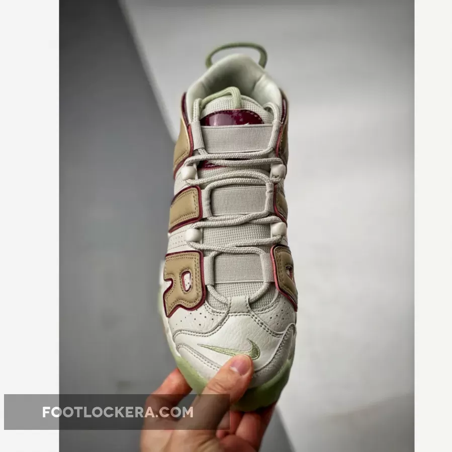 Making a bold statement is easy with the Nike Air More Uptempo Tan Beetroot. This bold and vibrant sneaker has all the fan-favourite features. The fun oversized graffiti-style bubble font Air branding is dressed in mocha and comes with chocolate brown lining.