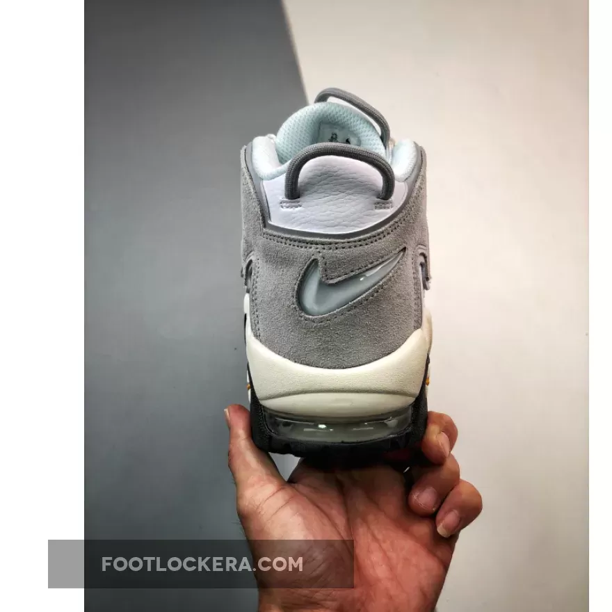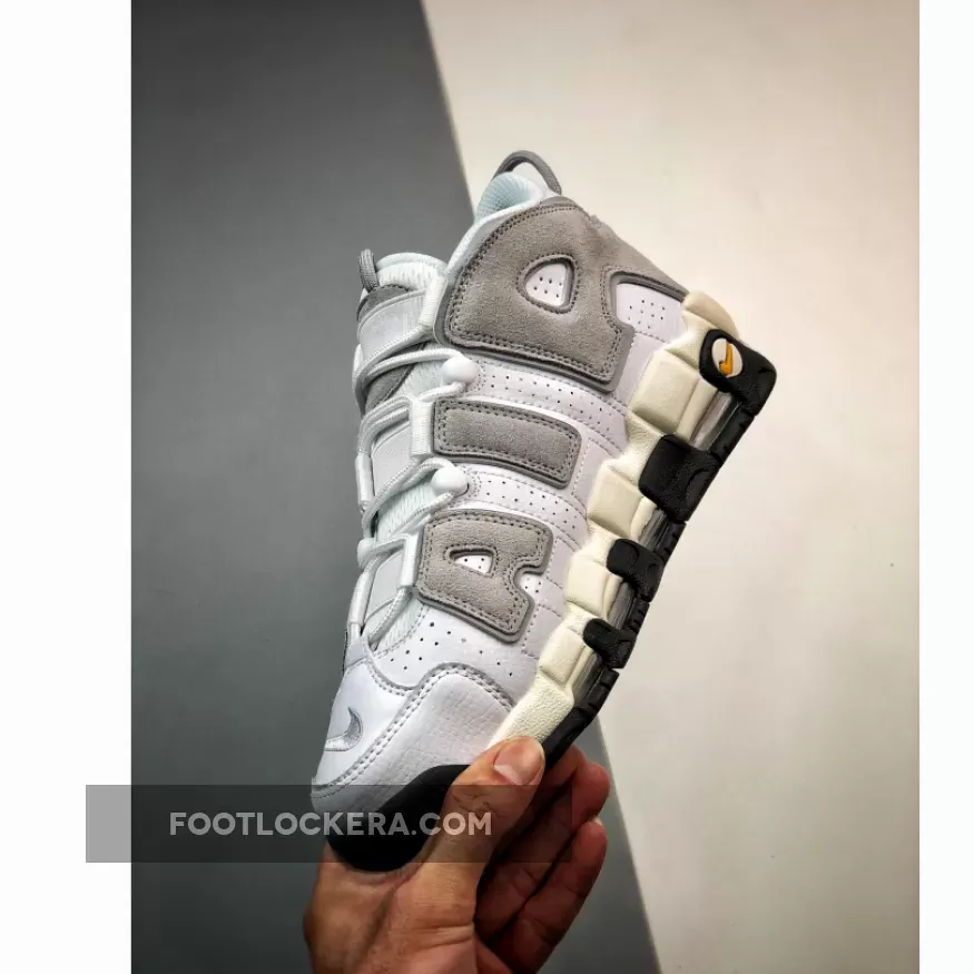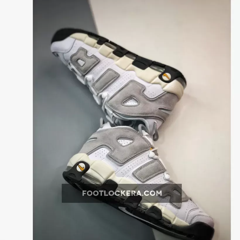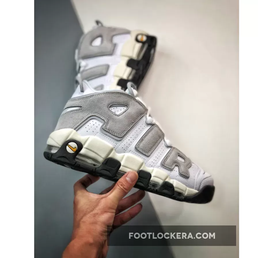 The ever-young 26-year-old Nike Air More Uptempo has just released a neutral colourway that will go with anything in your closet. Meet the Nike Air More Uptempo White Grey Black. The eye-catching details on this Air More Uptempo are the hairy grey suede oversized “AIR” branding on both sides of the shoe. A lighter shade of grey tumbled leather covers the rest of the upper. The lacing system is pure white, matching the mesh tongue. An embroidered grey mini Swoosh can be found on the toe box while Nike Air branding in white stands out against a golden brown insole. Cop the Nike Air More Uptempo White Grey Black and always be first in line for the latest Nike sneaker releases.