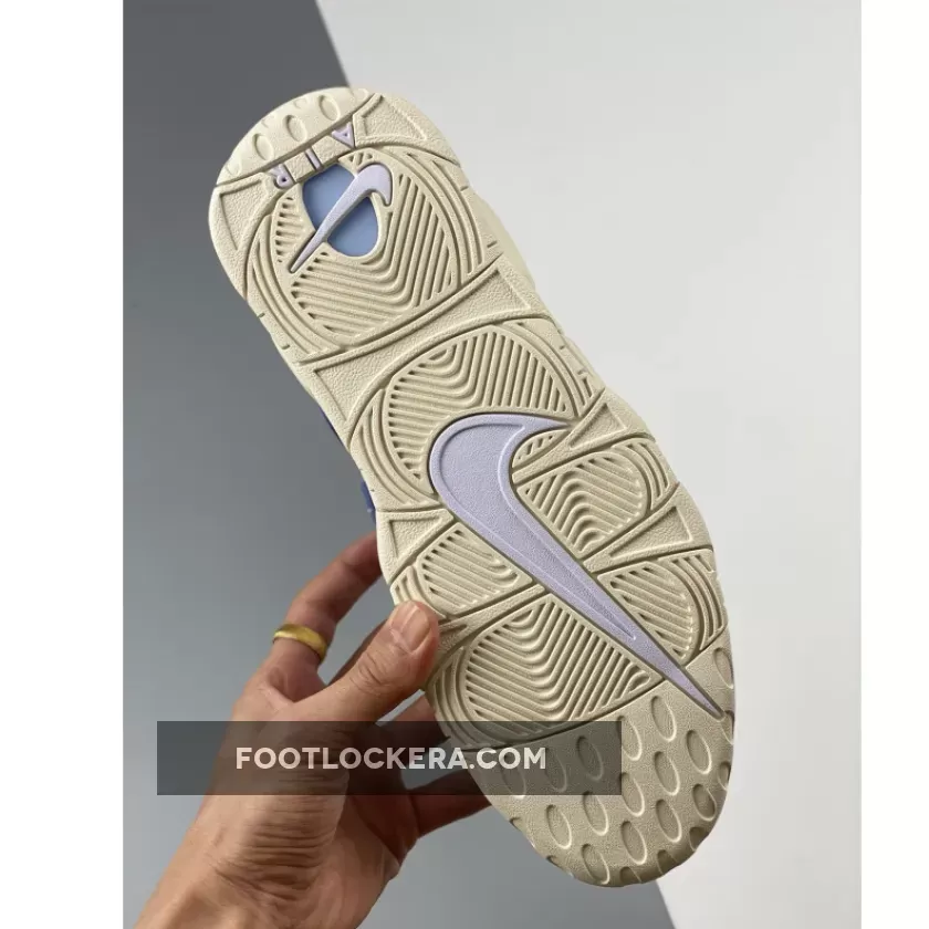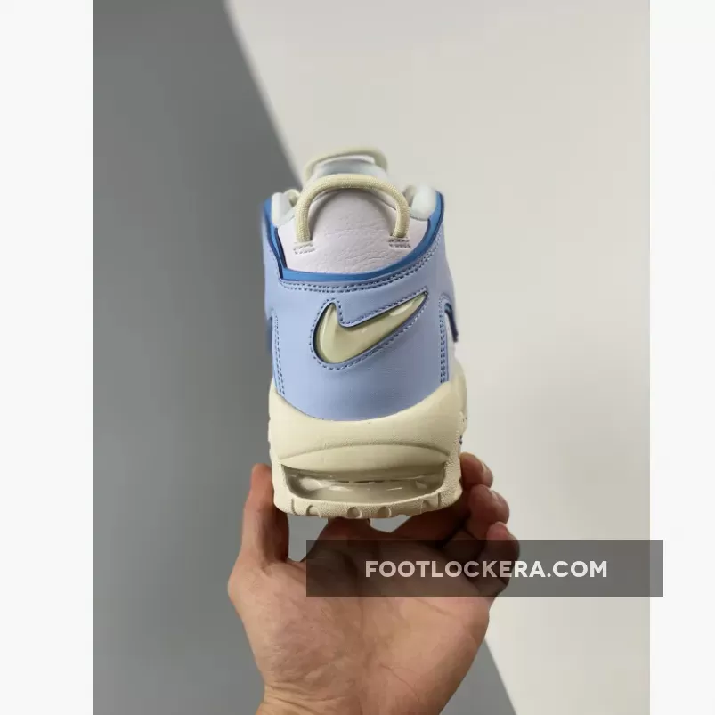 Nike’s b-ball silhouette inspired by graffiti and pop art, the Nike Air More Uptempo, has a new drop highlighted by a pastel blue hue. Introducing the Nike Air More Uptempo White Blue. This Air More Uptempo’s base is crisp white tumbled leather from heel to toe. The oversized “AIR” patches on both the medial and lateral mid-panels are in powder blue Ocean Bliss outlined by a slightly darker Blue Chill.
