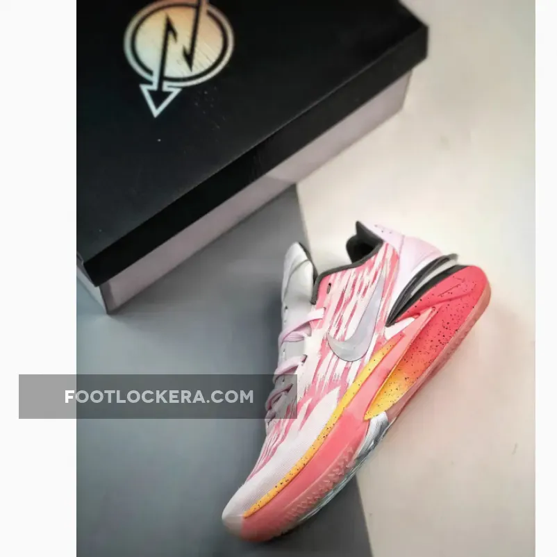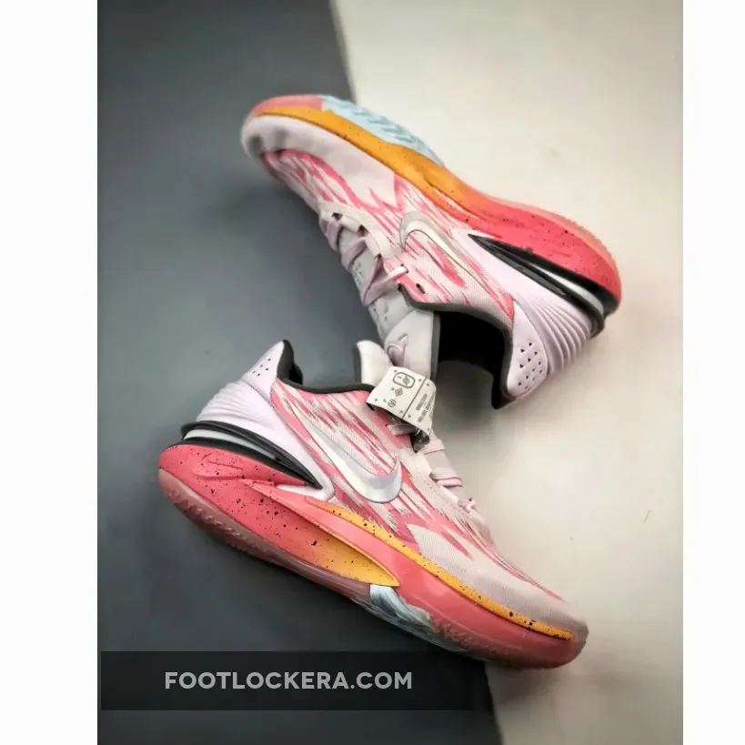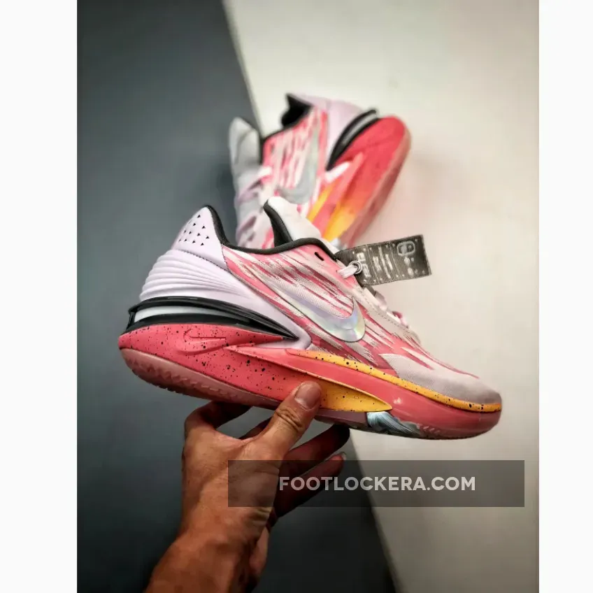 Touching down with a pearl pink mesh construction, the lateral and medial sidewalls are equipped with a shiny iridescent Swoosh that’s made to turn heads wherever you go. The GT Cut lightning bolt logo adorns the plush tongue, and around the heel, the newly-developed counter is accented in a light grey scheme.