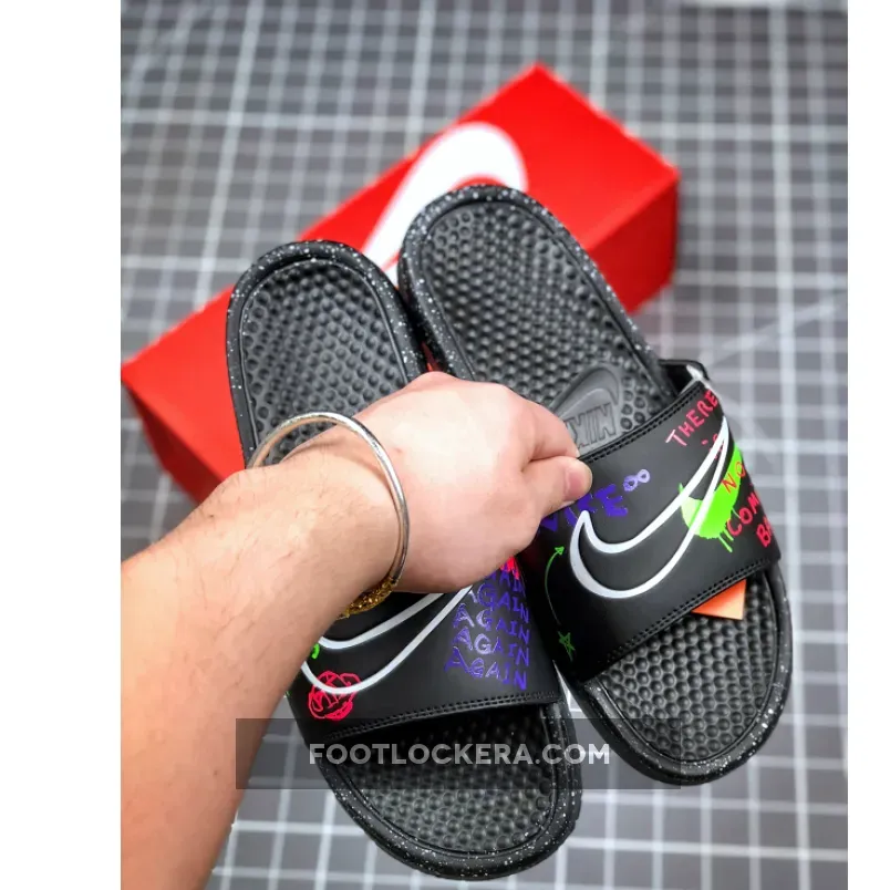 Loving these Nike Benassi “Planet of Hoops” Slides! ? They’re comfy, stylish and have that space-age vibe going on ?. Customer service was ? too, super responsive and helpful. Highly recommend! #NikePlanet #SlideLife ✨