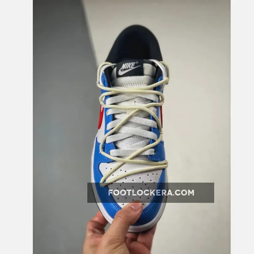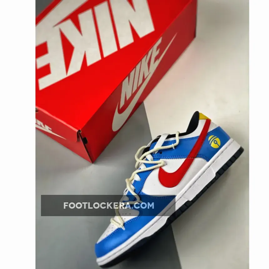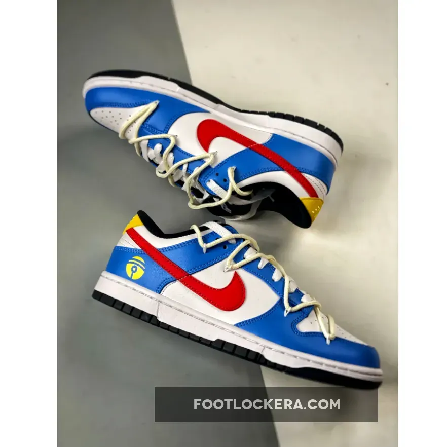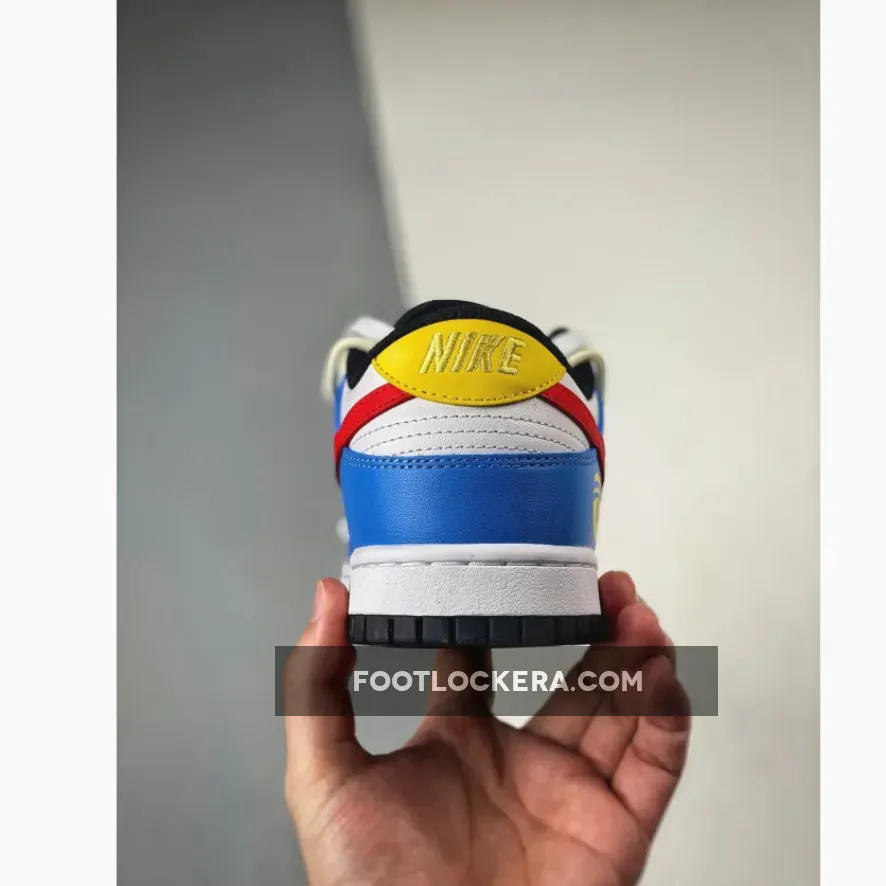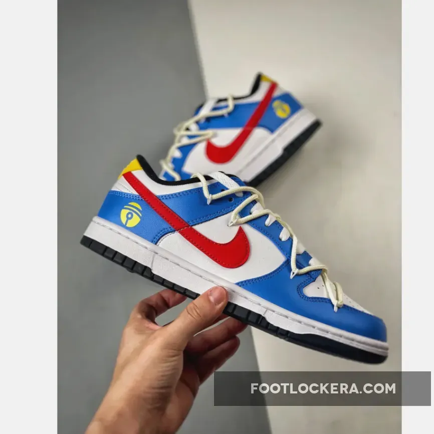 a closer look at the exclusive Nike SB Dunk High “Doraemon” is showcased, as this collaborative pair celebrates the Japanese manga’s 50th anniversary. Draped in the signature colorway of Doraemon, the silhouette boasts crisp white leather uppers with contrasting blue suede overlays. Additionally, red Swooshes and matching laces, followed by yellow tongues and lace locks that resemble the character’s bell-adorned collar, in addition to white midsoles and blue rubber outsoles top off the style.