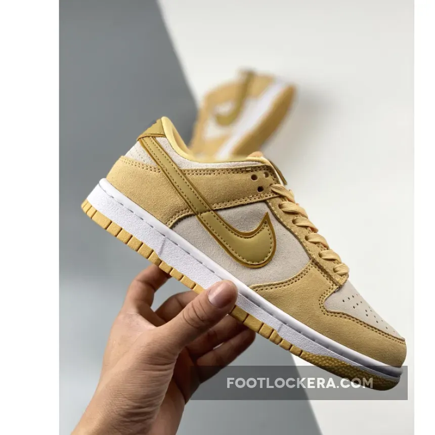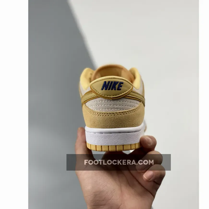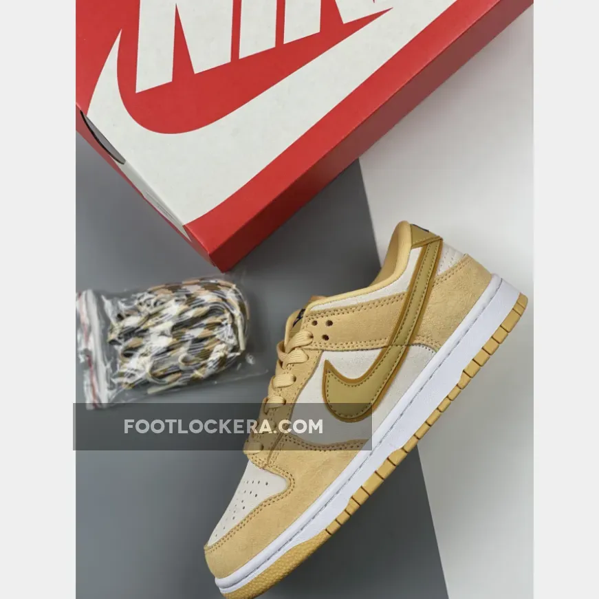 Soft suede & vibrant gold collide on this Dunk Low. Quality’s solid – expect precision stitching & comfy materials. A stunning take on a classic. #NikeDunkLow #GoldSuede #SneakerGameStrong ?