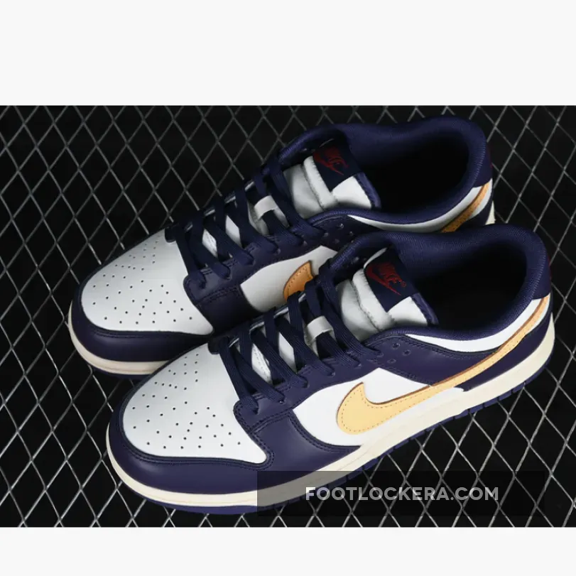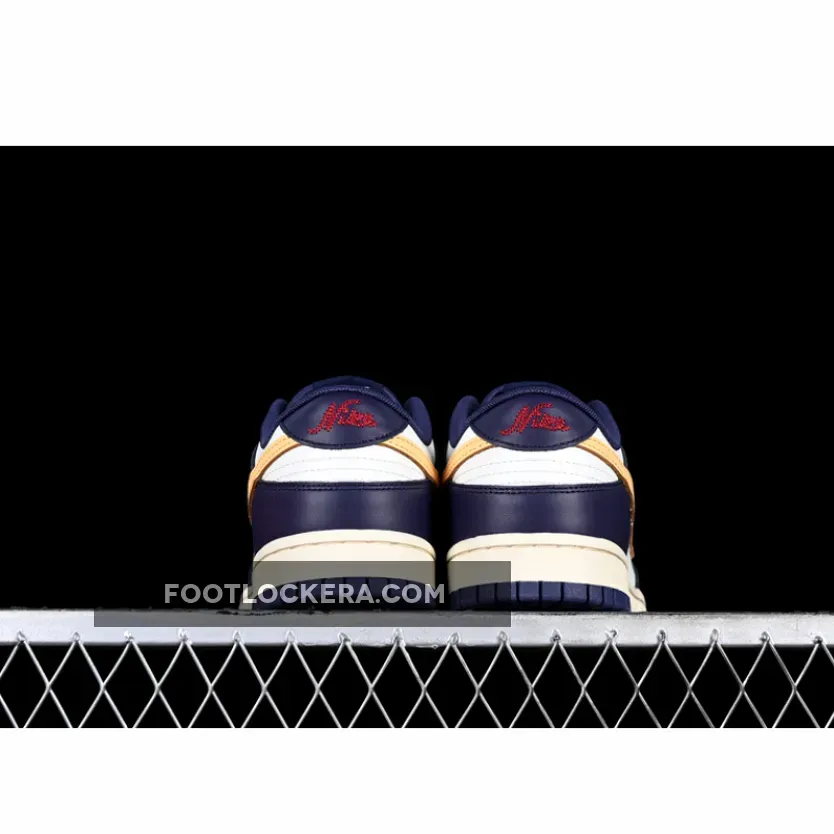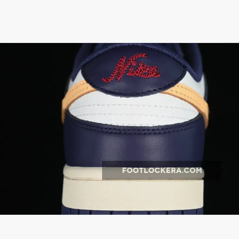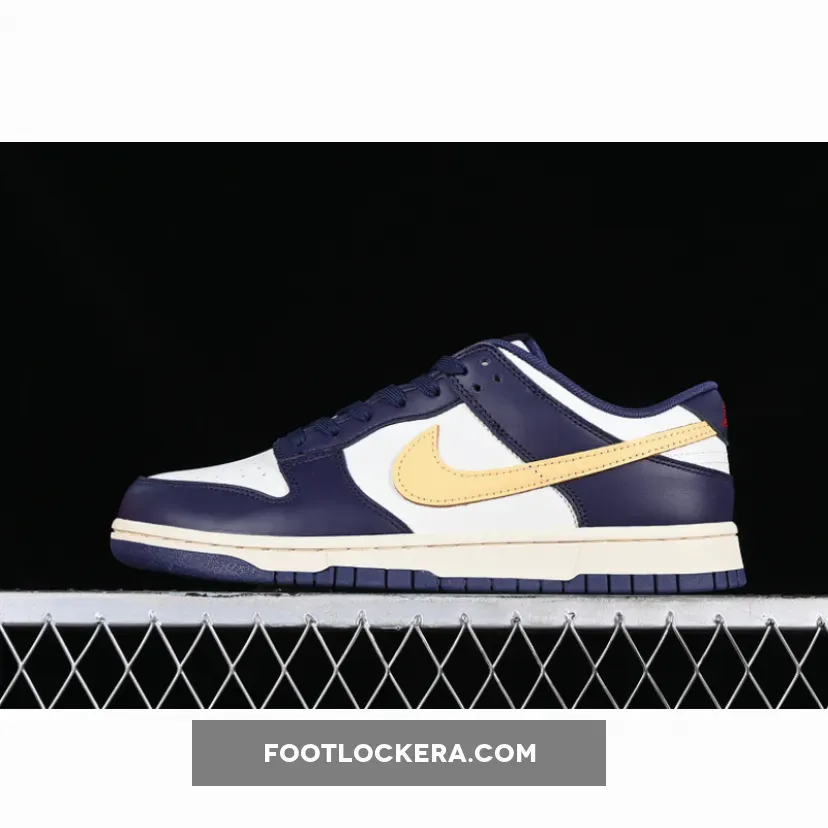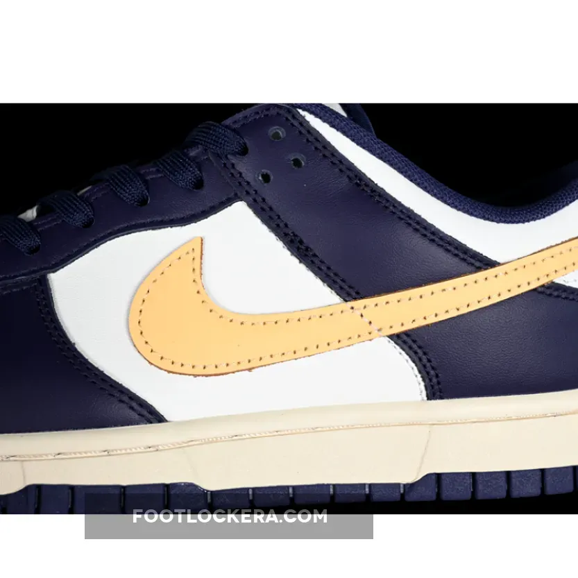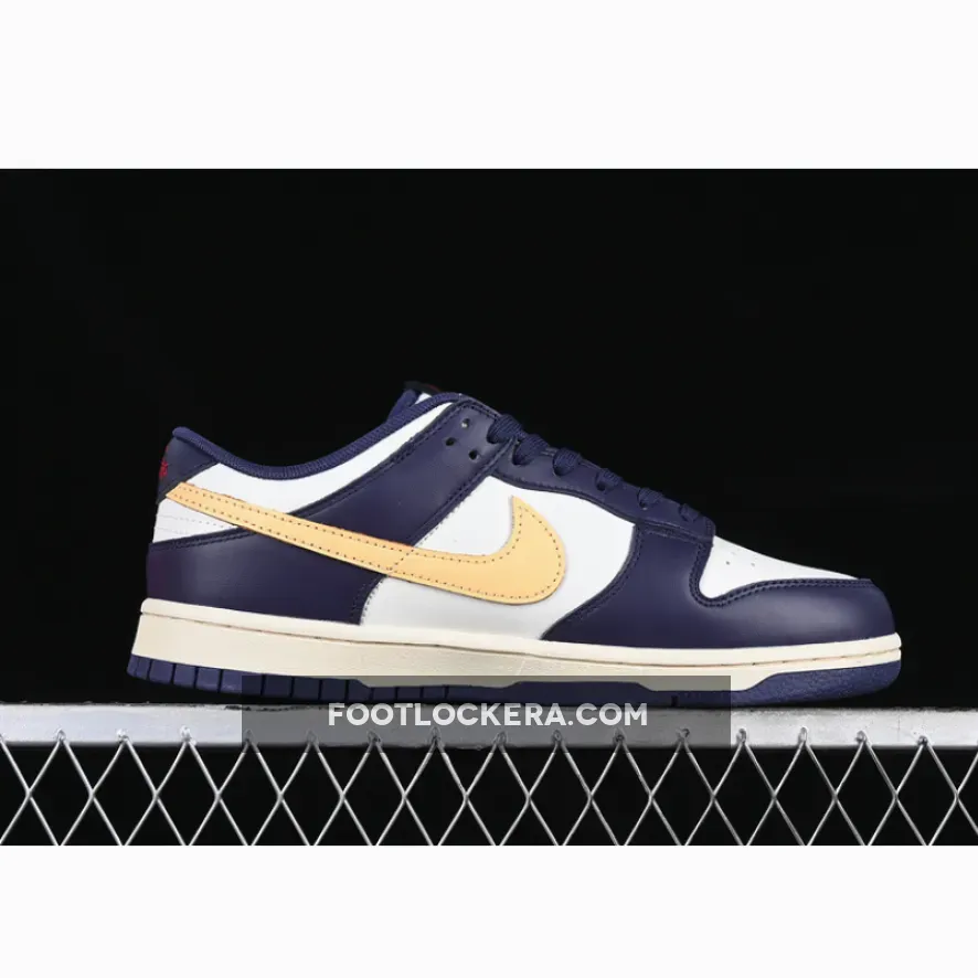 The Dunk Low showcases a striking navy blue base paired elegantly with crisp white panels on its upper structure. The iconic swoosh is rendered in coconut milk yellow, adding vibrancy against the deep tones of midnight navy. This combination creates a bold yet sophisticated look perfect for both everyday wearers and collectors alike who appreciate classic sneakers reimagined through modern design sensibilities.